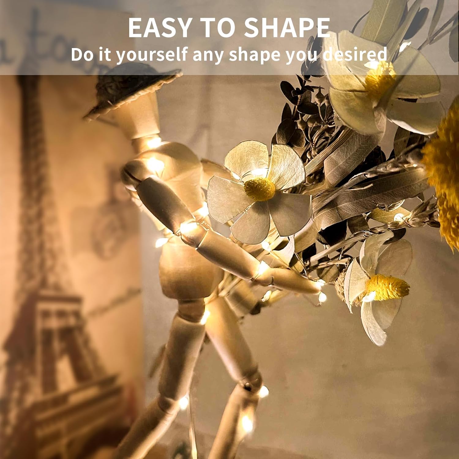 - 【FLEXIBLE AND SHAPELY LIGHTS】-- The silver wire starry moon lights are made of flexible copper wire material,you can easily bend it into any shape or entangle it around anything you want,such as Valentine's Day wreaths,Christmas trees,Wedding bouquets,Easter Egg,Mason jar,Halloween costume,Pumpkin lampand and more.