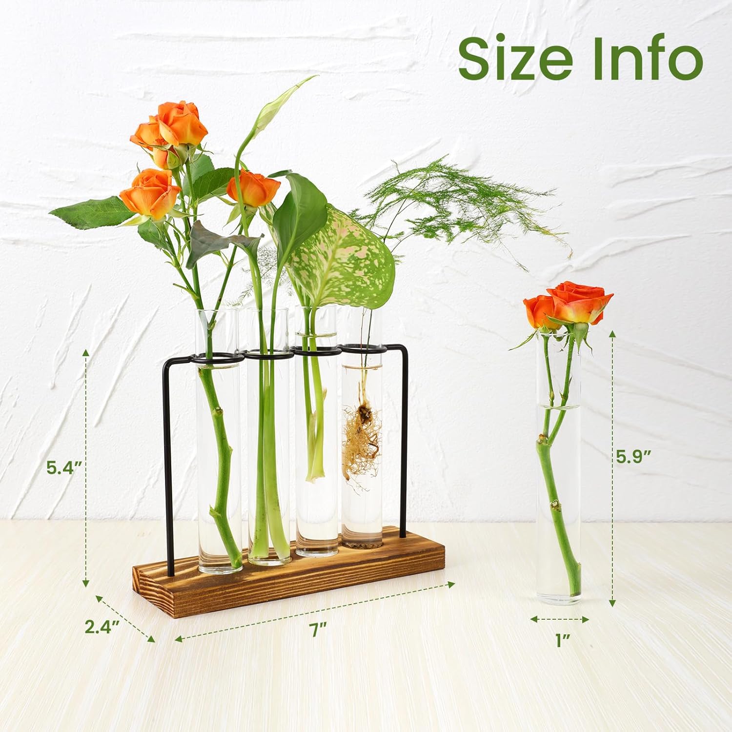- Included Components : Wooden and Metal Stand, Glass Tubes x5