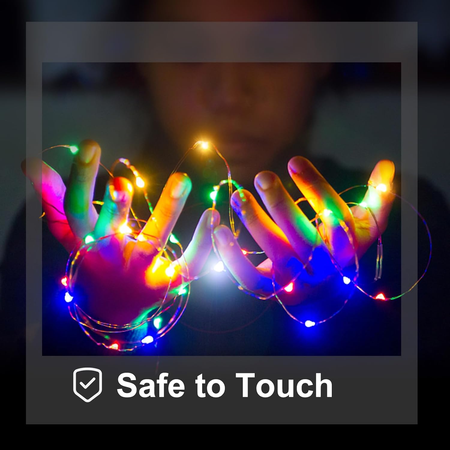 - ✨Waterproof &Touch Safe : Our fairy string lights is IP65 Waterproof(battery box except). Can be submerged in water, safe to use indoors and outdoors without any worry of moisture or weather damage or short circuit. Have low battery power consumption, will not get hot when used for a long time, and are safe to touch. The warm lighting is bright but not dazzling, and can be used as a nightlight to create a pleasant and romantic feeling.