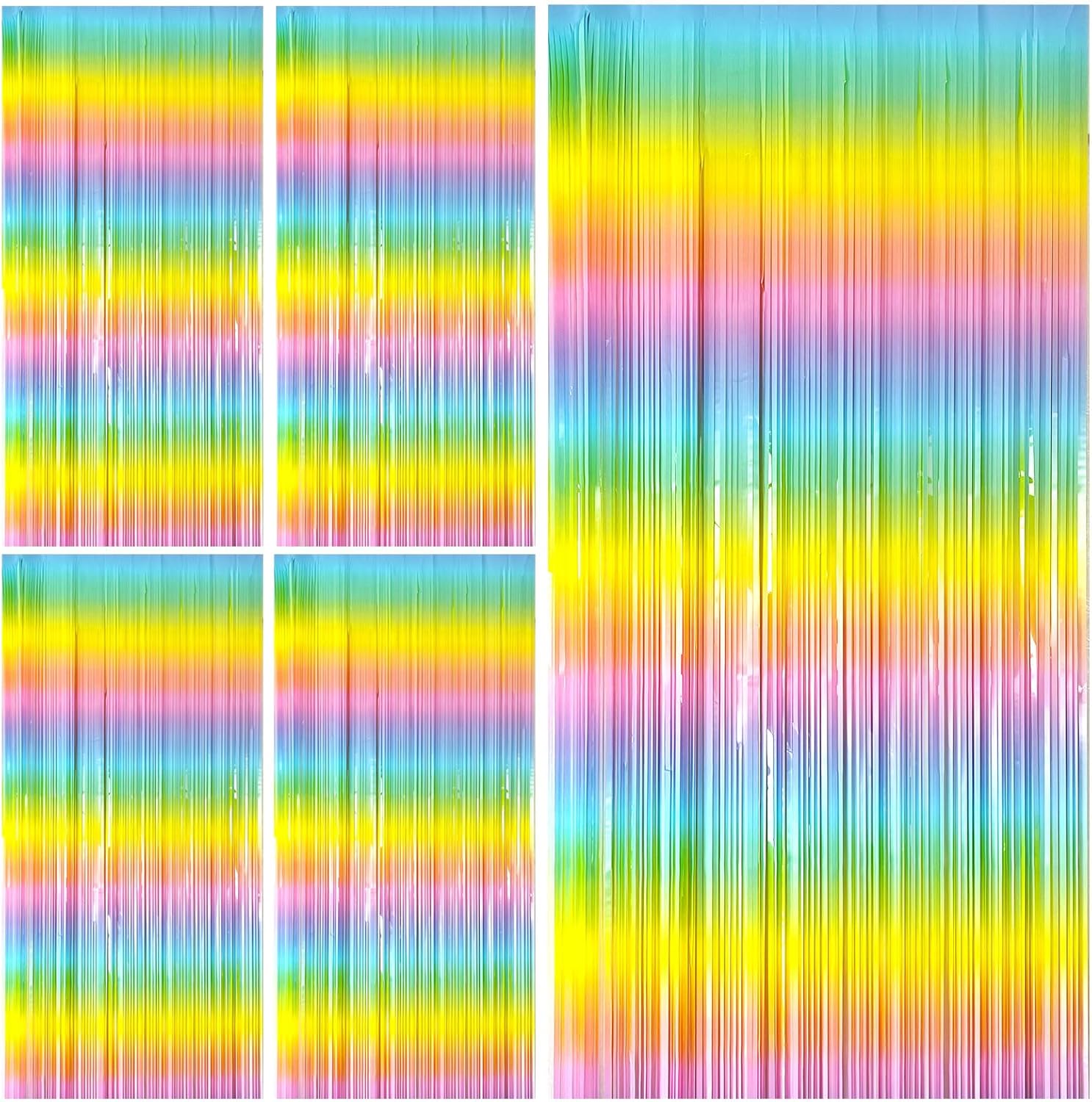 - Birthday Curtain Backdrop:5Pack,Available in pink, white, black and rainbow colors,each curtains size is 3.28 ft x 6.56 ft, enough length foil fringe backdrops are perfect for the door, wall and table,feel free to cut to any length you want.