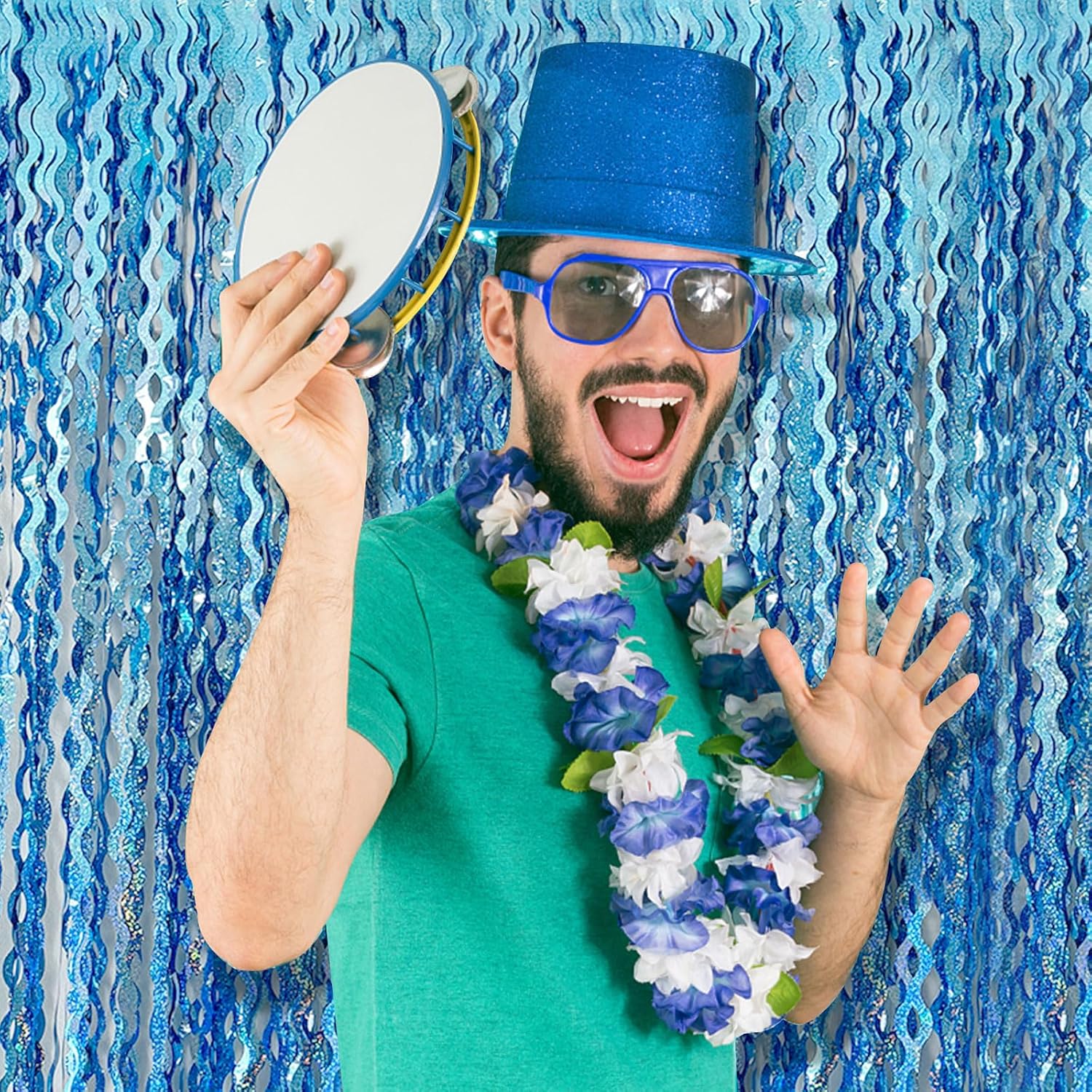 - Blue Streamers Backdrop:The fringe backdrop is made of high-quality shiny tinsel.Outer covering sparkle paillett PET film material,thicker than similar products, not easy to fall apart, durable and reusable.Wave shape add sparkle as decorations for parties.