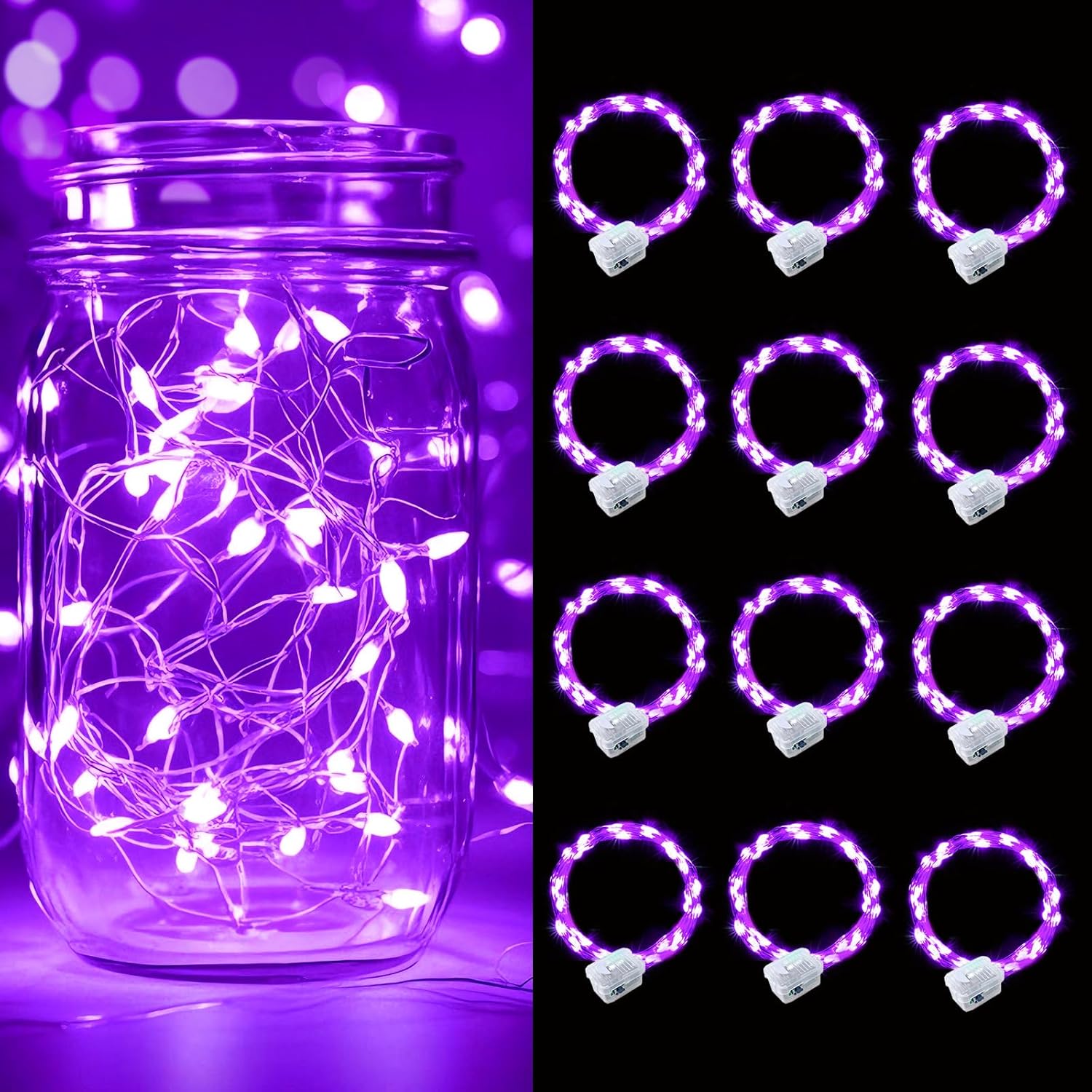 pozzolanas 12 Pack Purple Battery Operated String Lights - 7ft Waterproof Fairy Lights with 20 LEDs for Home, Mason Jar, Party, Wedding, Halloween, Christmas Decorations