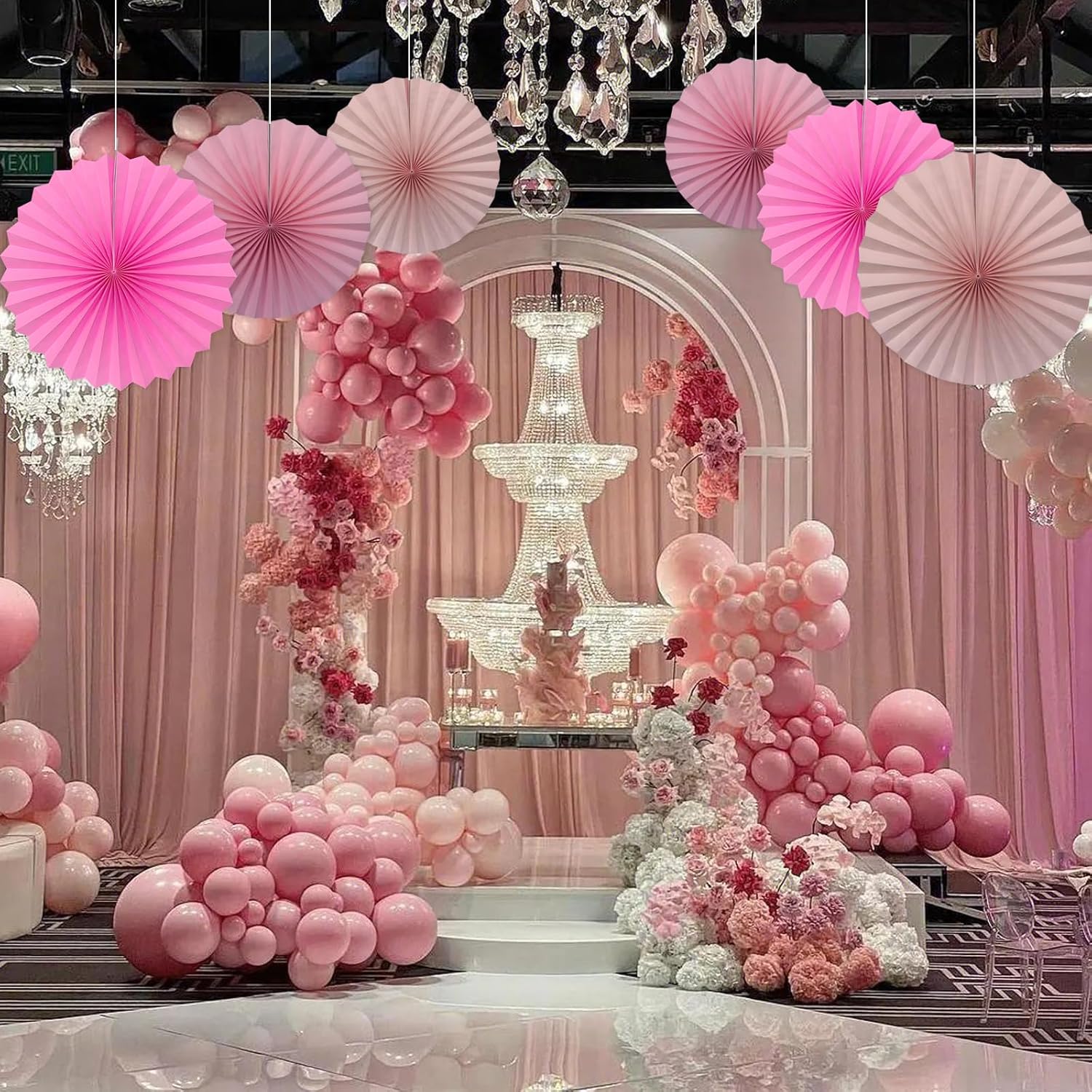 Red Hanging Paper Fans,Red Accessories Paper Decorations for Party,Valentines Day Decorations,Photo Booth Props Decor,16in Hanging Paper Fans 30 Color DIY Set (Magenta)
