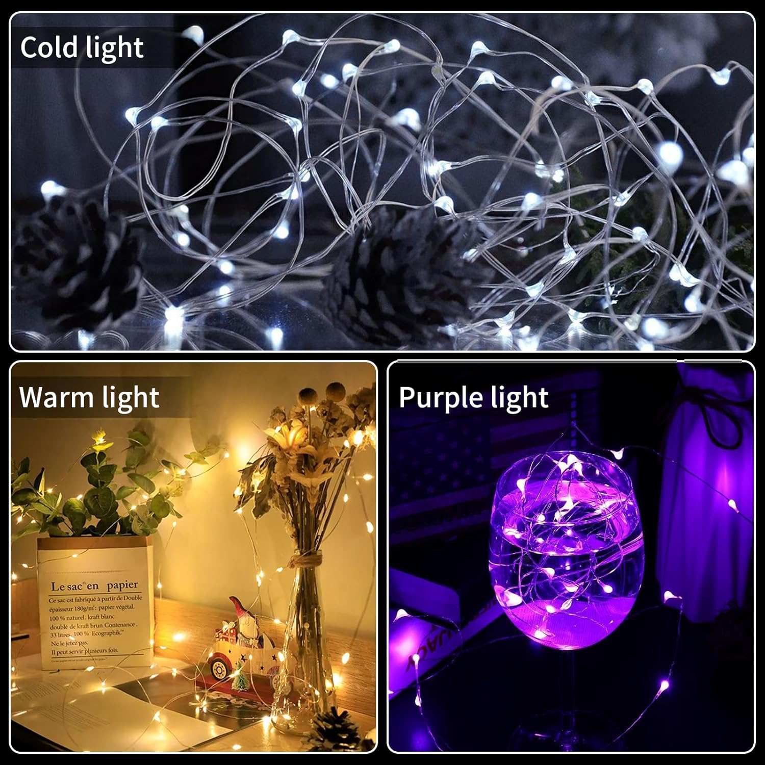 - 【IP65 WATERPROOF STARRY LIGHTS】-- These battery powered string can be used indoors and outdoors without worrying about moisture or weather damage. Fairy lights are perfect for anyplace, including water,ice cubes,vases,snowman,pool,crafts and more. Note: Only the string lights is waterproof, the battery pack is not.