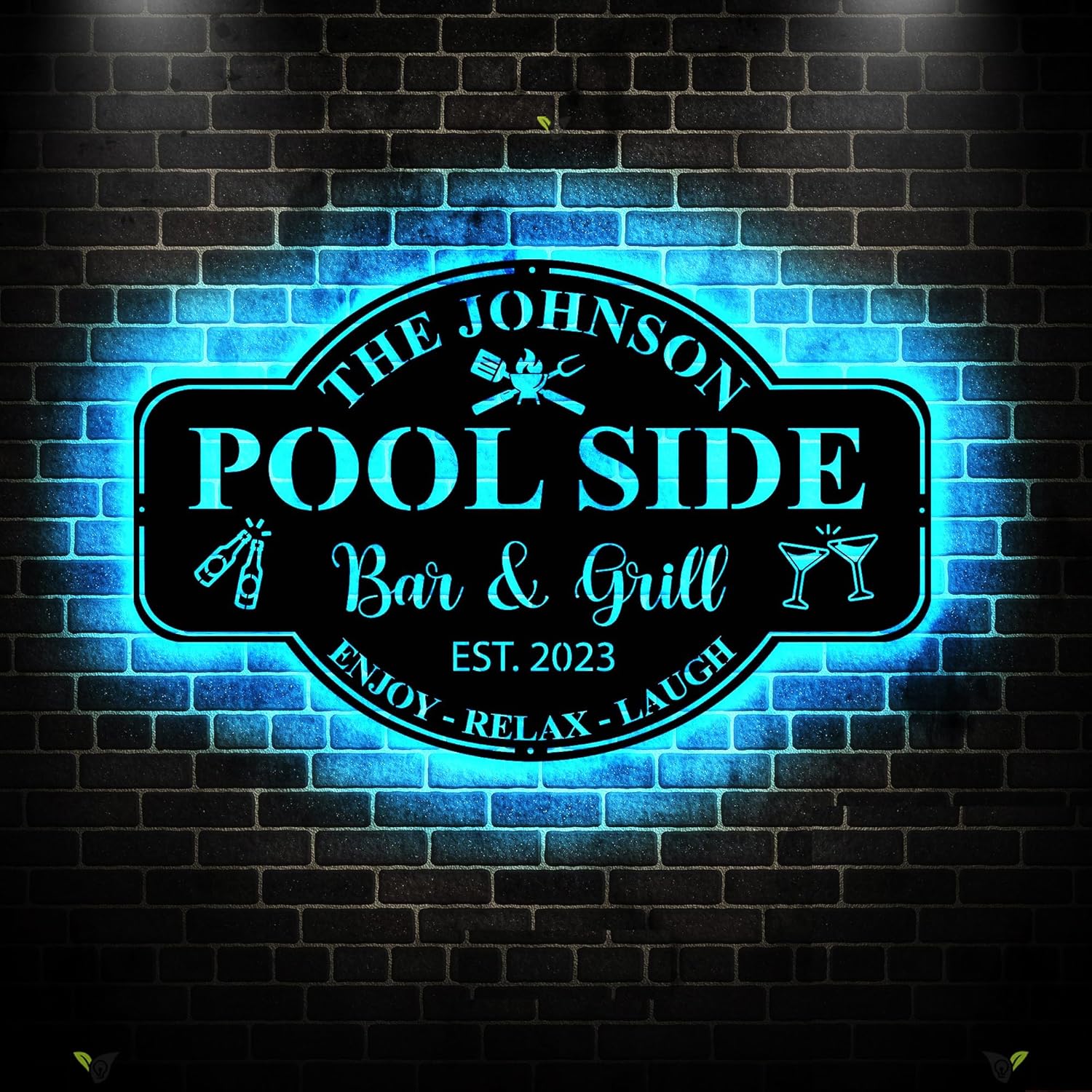 Personalized Family Poolside Sign LED Light,Swimming Pool Metal Sign,Pool Oasis Bar and Grill Metal Wall Decor,Patio Decor,Housewarming Gift