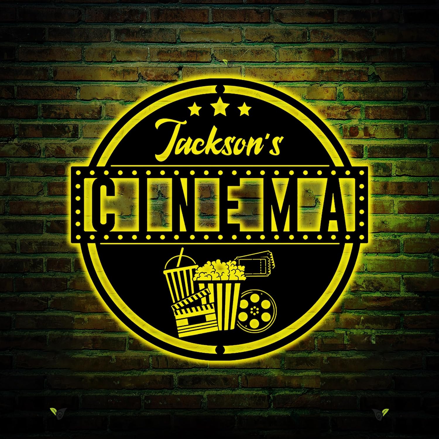 Custom Movie and Popcorn Metal Wall Art LED Light Custom Family Cinema Home Theater Name Sign Home Decor Theater Decor Xmas Birthday Gift