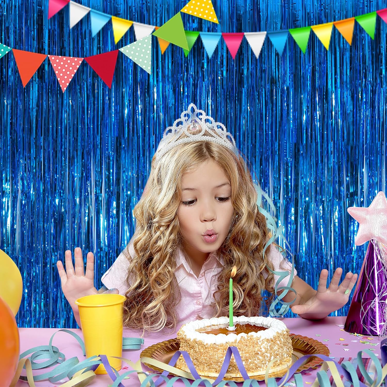 Blue Fringe Curtain Party Streamers 2Pack 3.3 x 8.3 Ft Foil Fringe Backdrop Curtains for Birthday Wedding Bridal Baby Shower Holiday Tinsel Streamers Blue Christmas Party Decorations Door Streamer