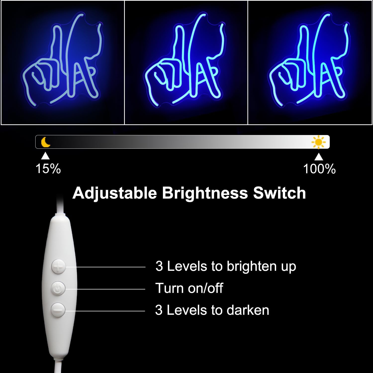 - 【Adjustable Neon Light】The Kullneon LED sign is equipped with a super-intelligent dimming system, which can meet different lighting needs. The middle button to turn ON/OFF the neon wall sign, the UP and DOWN buttons to adjust the brightness of neon lights. The brightness of neon wall light can be adjusted according to your preferences and ambient light.