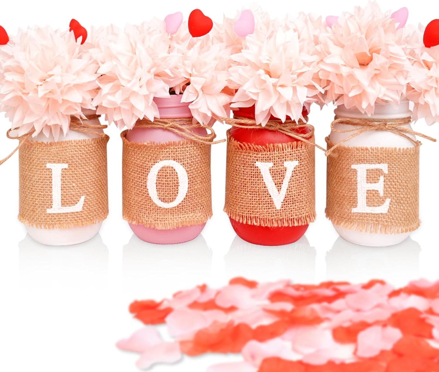 - Ideal for Dinning Room Decorations - With its rustic charm and warm LOVE letter, our Valentines Mason Jars Centerpiece is the perfect addition to your home decorations. It not only elevates the festive atmosphere but also adds a personal touch to your celebrations.