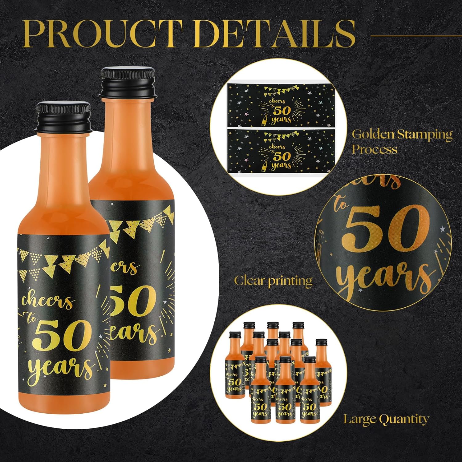 - Sufficient Party Package: this 50th party favors set includes 50 pcs mini liquor bottles, 50 pcs 50th birthday wine labels for bottles, and 2 pcs tiny funnels for bottles; Ideal for both men's and women's 50th birthday party celebrations