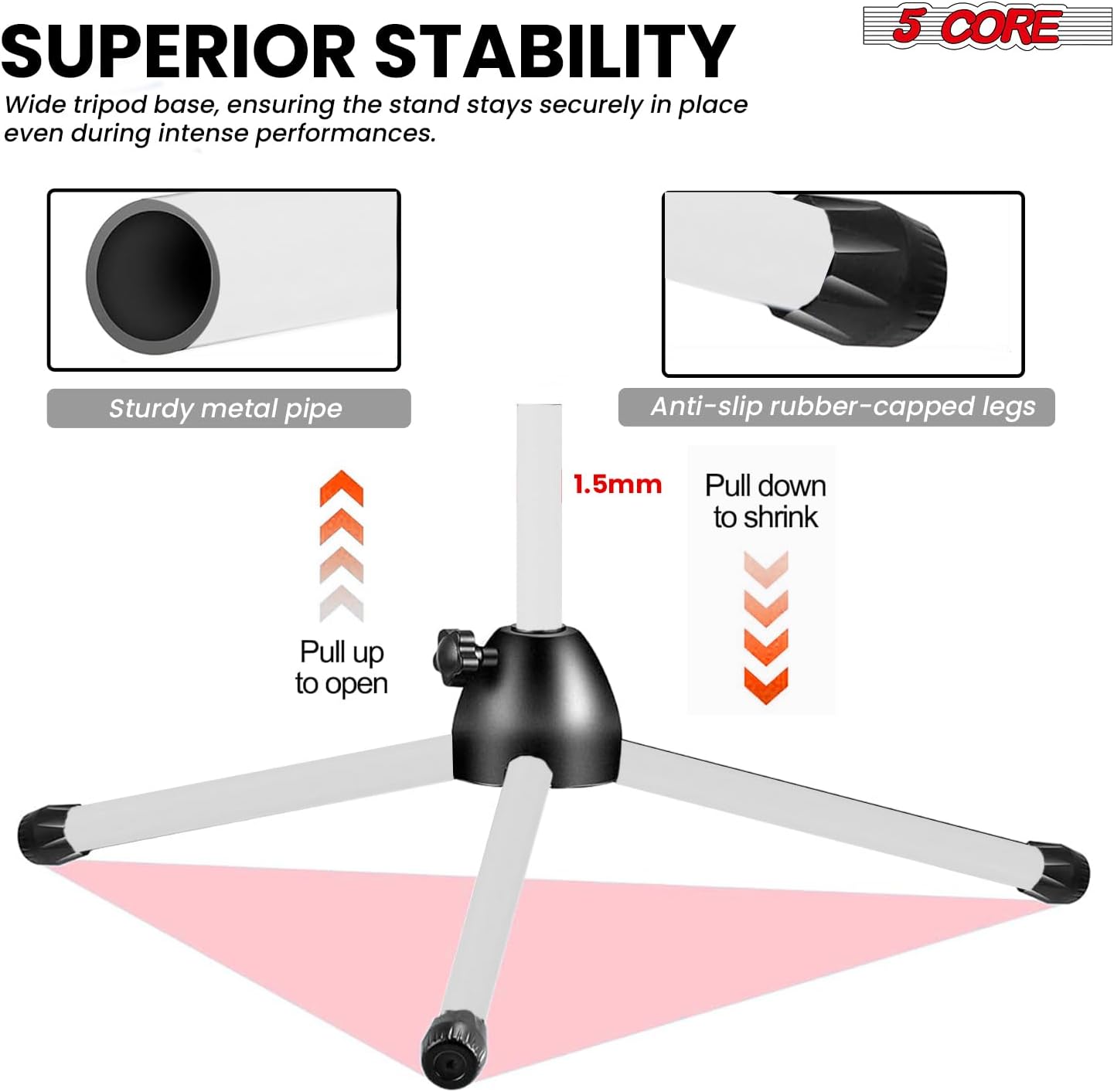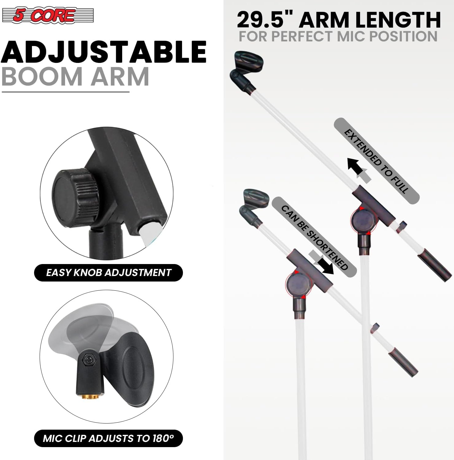 5 Core Tripod Mic Stand Floor Adjustable 18 to 72 Inches Sturdy Boom Arm Holder Microphone Stands Pedestal Para Microfono for Singing - MS 080 WH