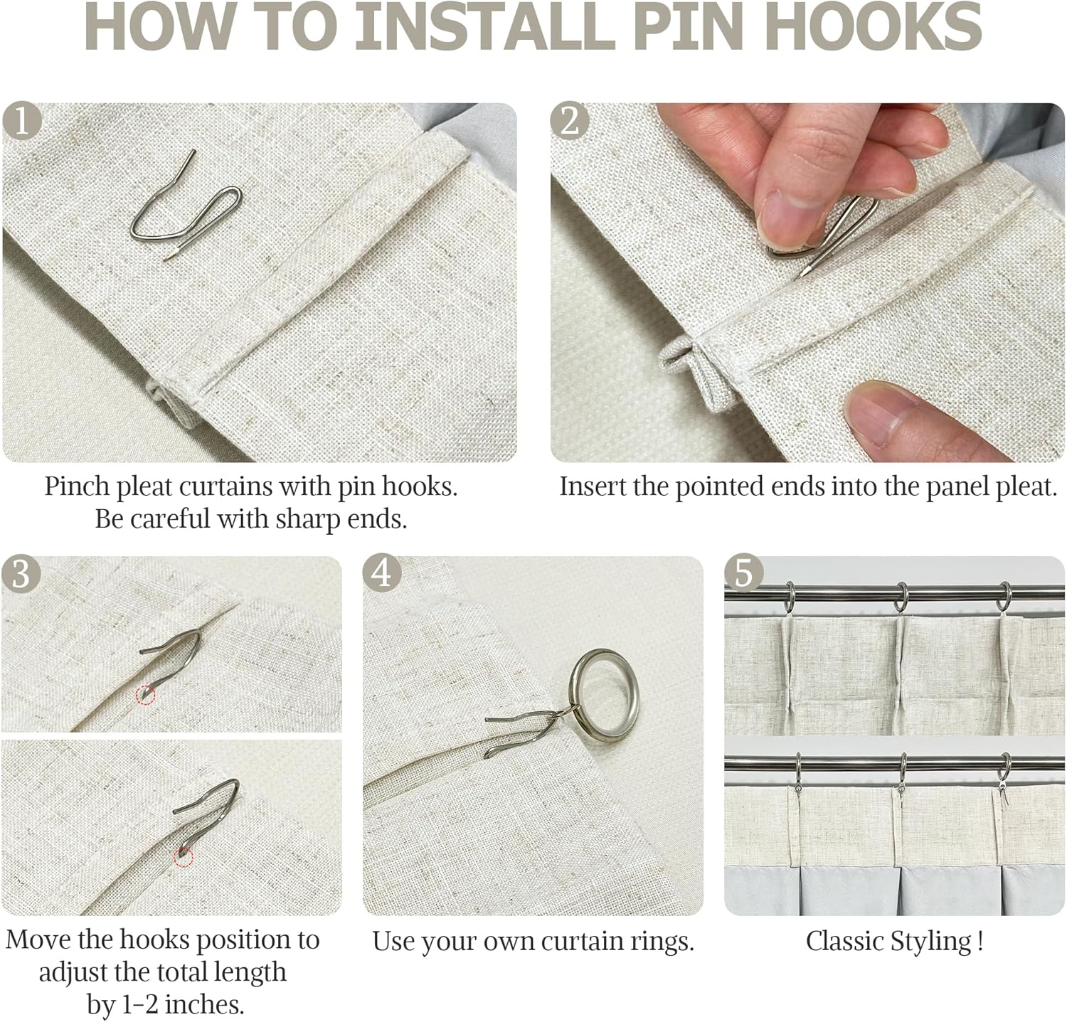 - Multiple Hanging Ways:Rustic Casual curtains have many hanging options to meet your different home décor needs:back tabs(4 inch),clip rings,ring hooks or for track system.Please note that 18 hooks are in the package but clips and rings are not included.Two weighted hems sewn at the bottom increase the draping effect.Moving the pinhooks position to adjust the total height by 1-2 inches