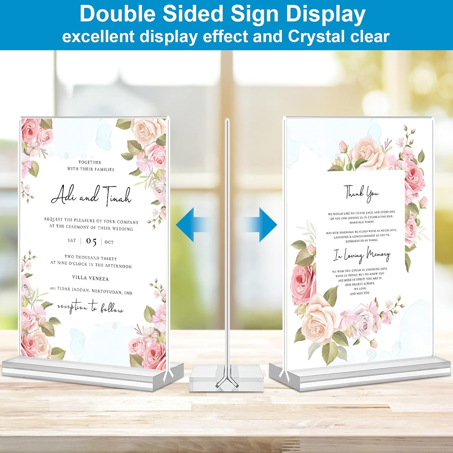 - 【Double Sided Sign Stand】This 16Pack acrylic sign holder 4x6 is designed with a vertical double sided stand. Typically, people prefer this double-sided holder rather than slant-back ones. Because these double-sided holders allow you to display on both sides, but slant back ones, which only allow you to display on one side
