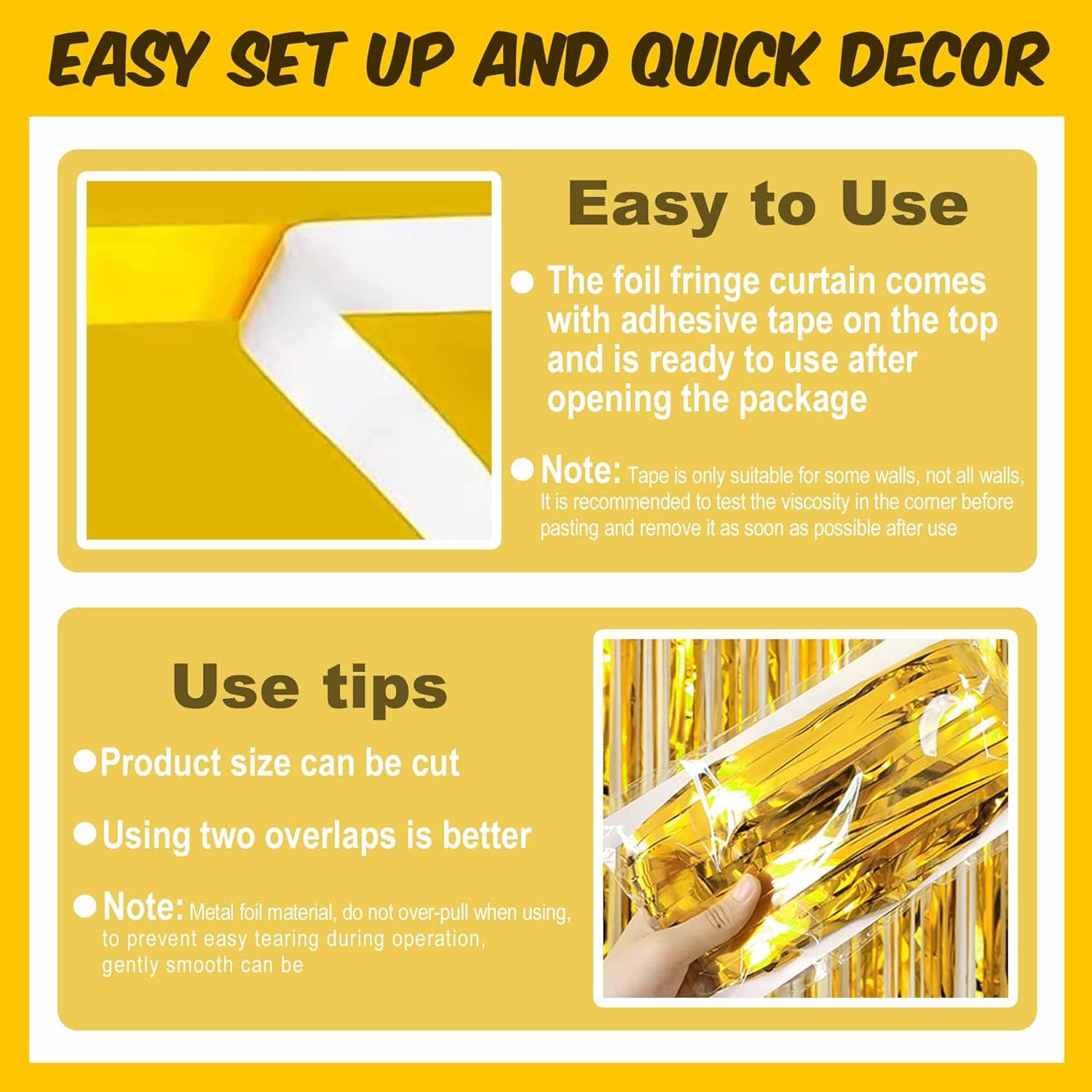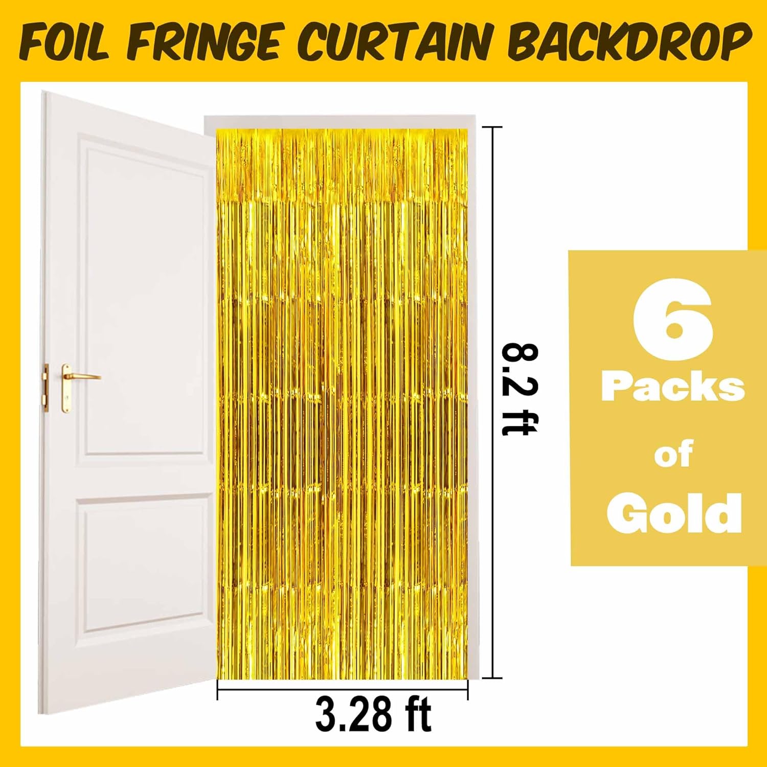 • Package and size: 6 Packs Foil Fringe Streamers Curtain Backdrop. The size is 3.28 x 8.2 feet. It's long, enough to fit any party occasion. Made of metallic foil material, shiny and creating dazzling effects, adding luxury and visual impact to the party
