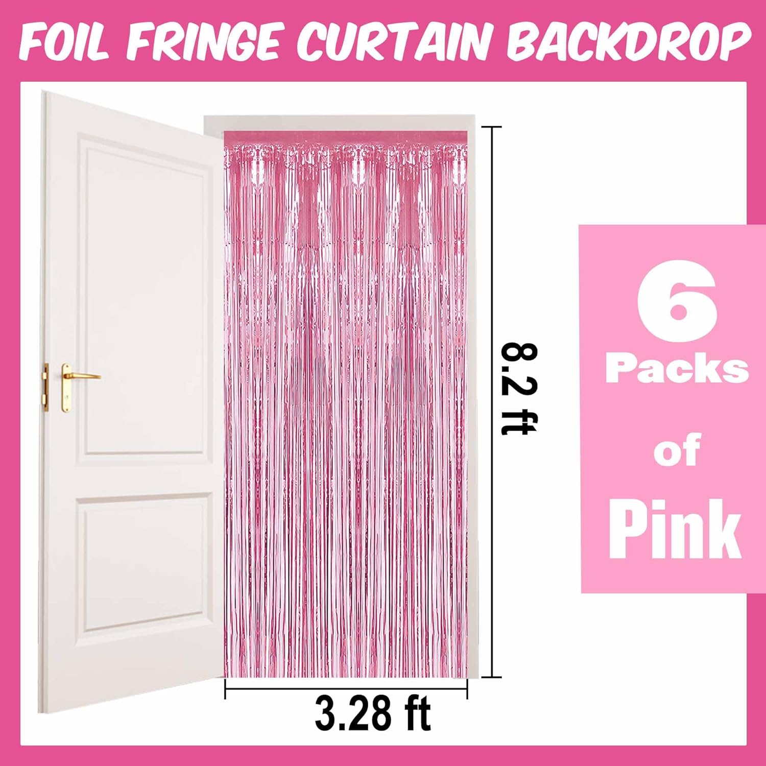 6 Pack Pink Foil Fringe Curtains Backdrop, 3.28 x 8.2 Ft Metallic Streamers Tinsel Curtains Background for Photo Booth, Birthday, Weddings, Carnivals, Graduation, Themed Party Decorations