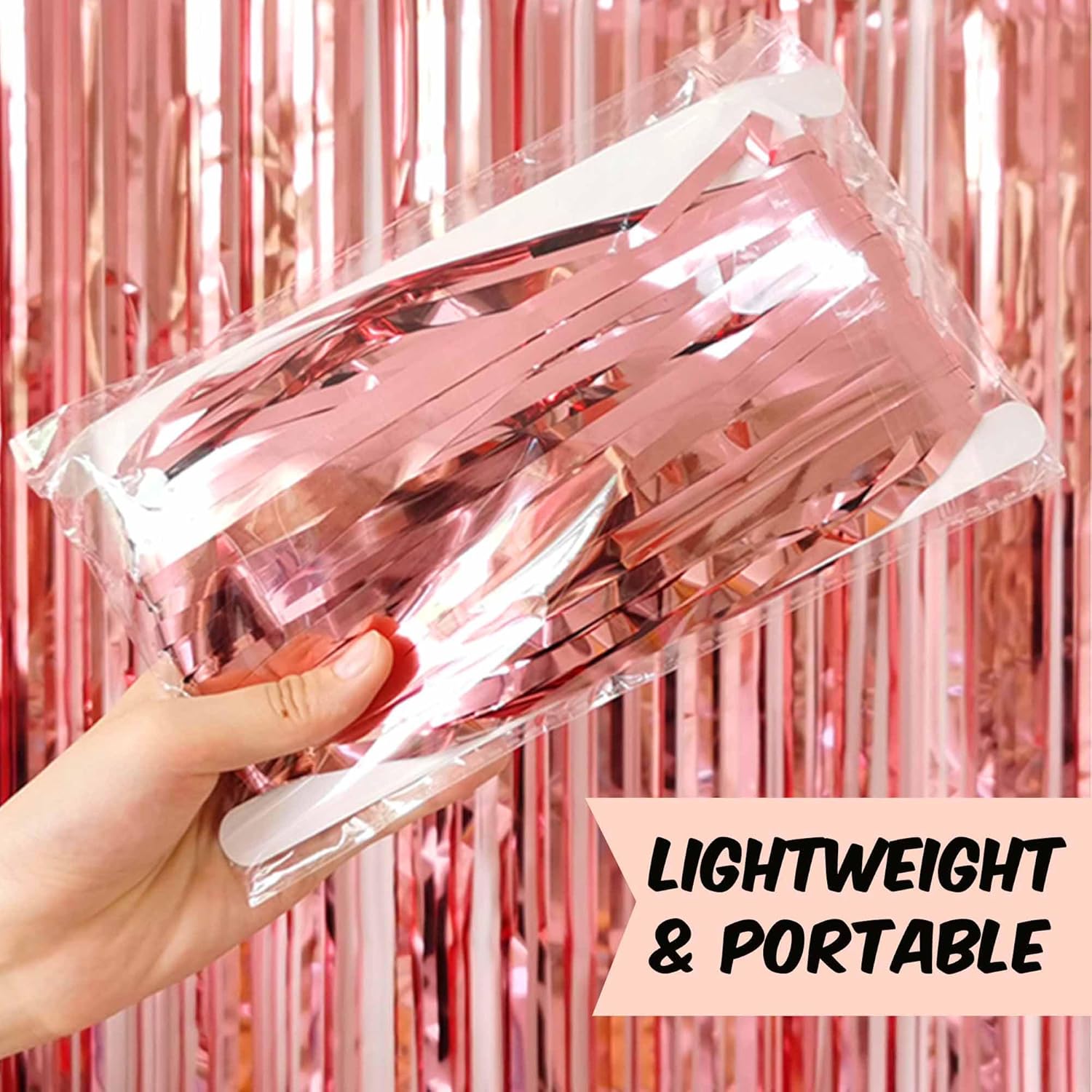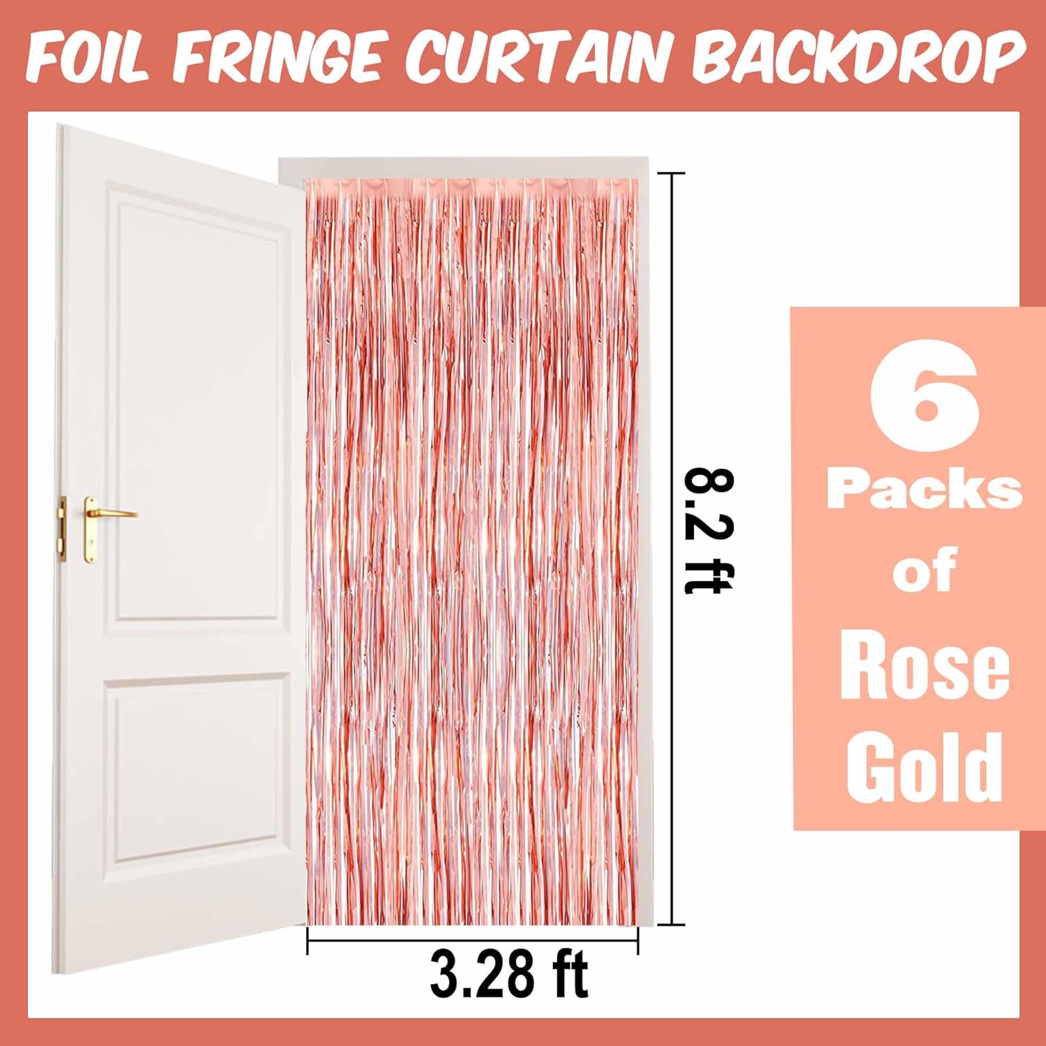 6 Pack Rose Gold Foil Fringe Curtains Backdrop, 3.28 x 8.2 Ft Metallic Streamers Tinsel Curtains Background for Photo Booth, Birthday, Weddings, Carnivals, Graduation, Themed Party Decorations