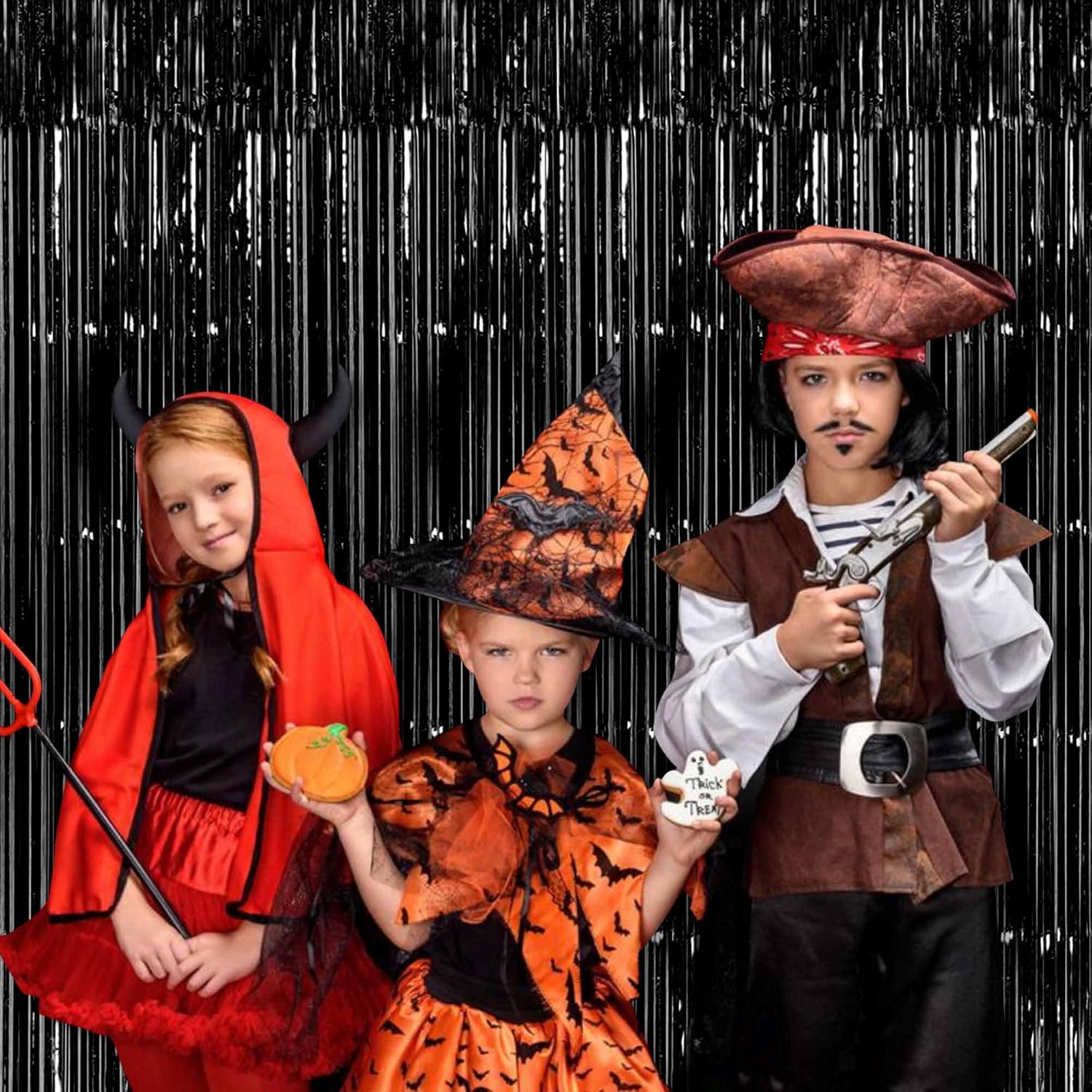 6 Pack Black Foil Fringe Curtains Backdrop, 3.28 x 8.2 Ft Metallic Streamers Tinsel Curtains Background for Photo Booth, Birthday, Weddings, Carnivals, Graduation, Themed Party Decorations