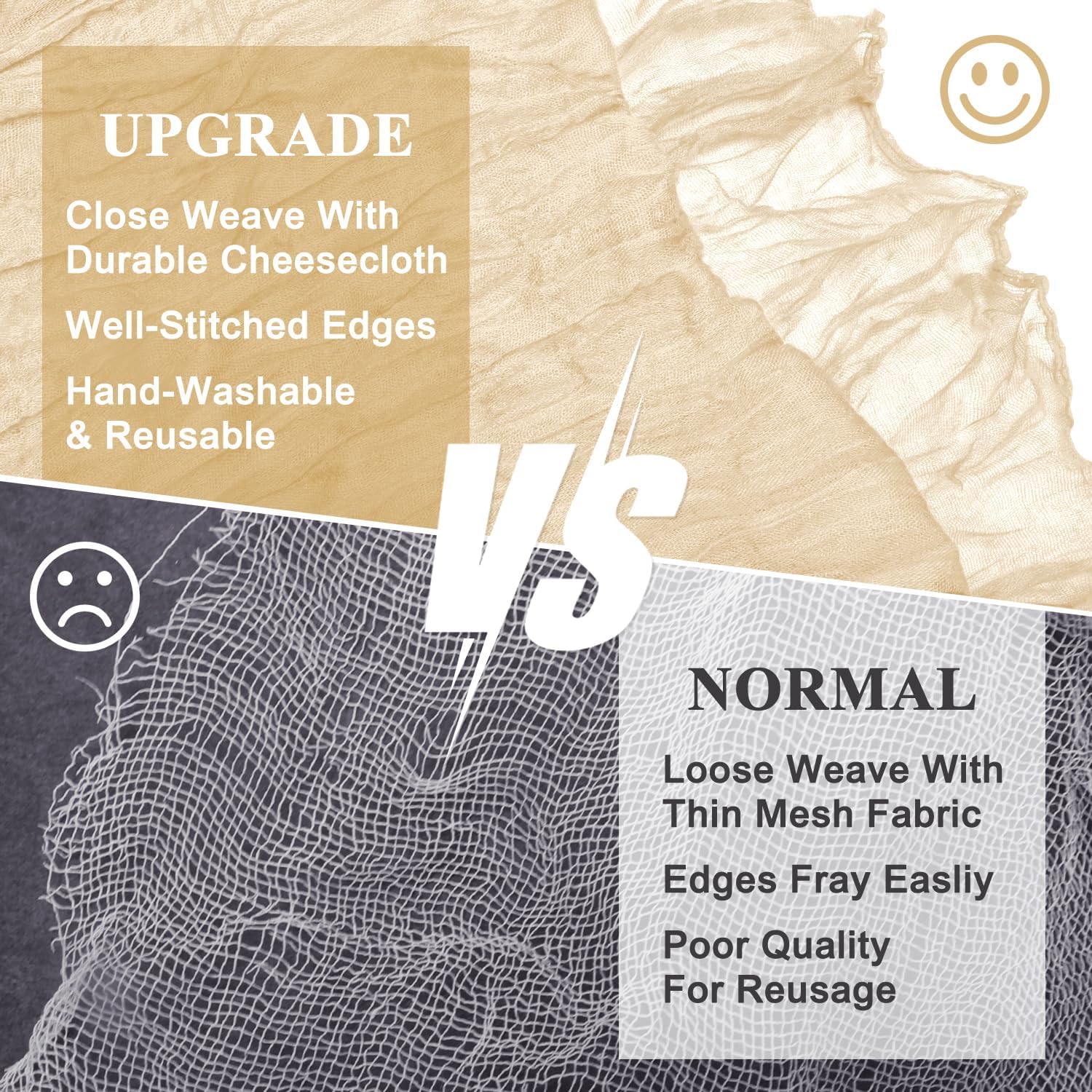 - 【Cheesecloth Table Runner】 Size: 35" W x 120" L. You will get 1 piece 10FT length cheesecloth table runner. The sheer rustic table runner is long enough to span a large table and drape gracefully across the table. It will gently sway in the wind, adding a romantic atmosphere to your occasion. These eye-catching gauze table runners are ideal for arranging an elegant, stylish tablescape.