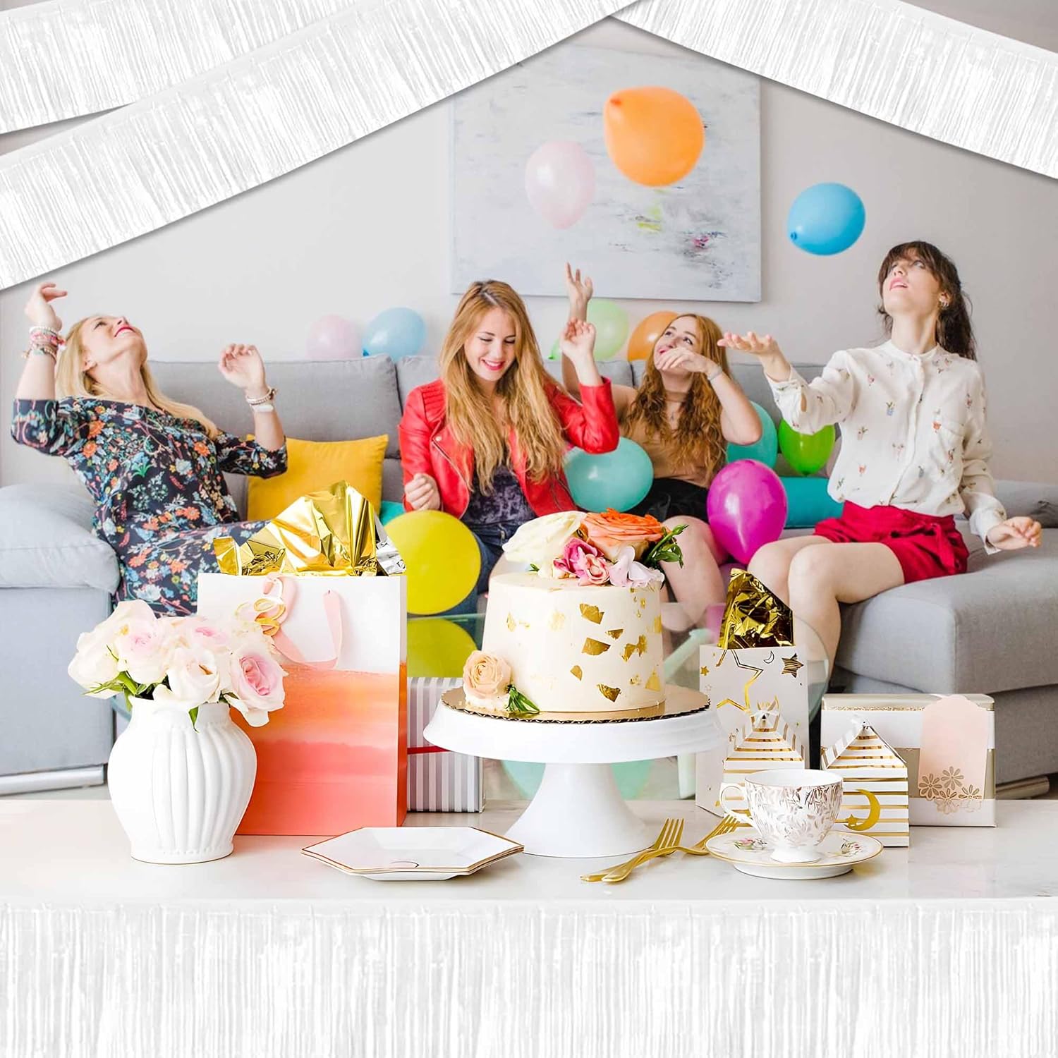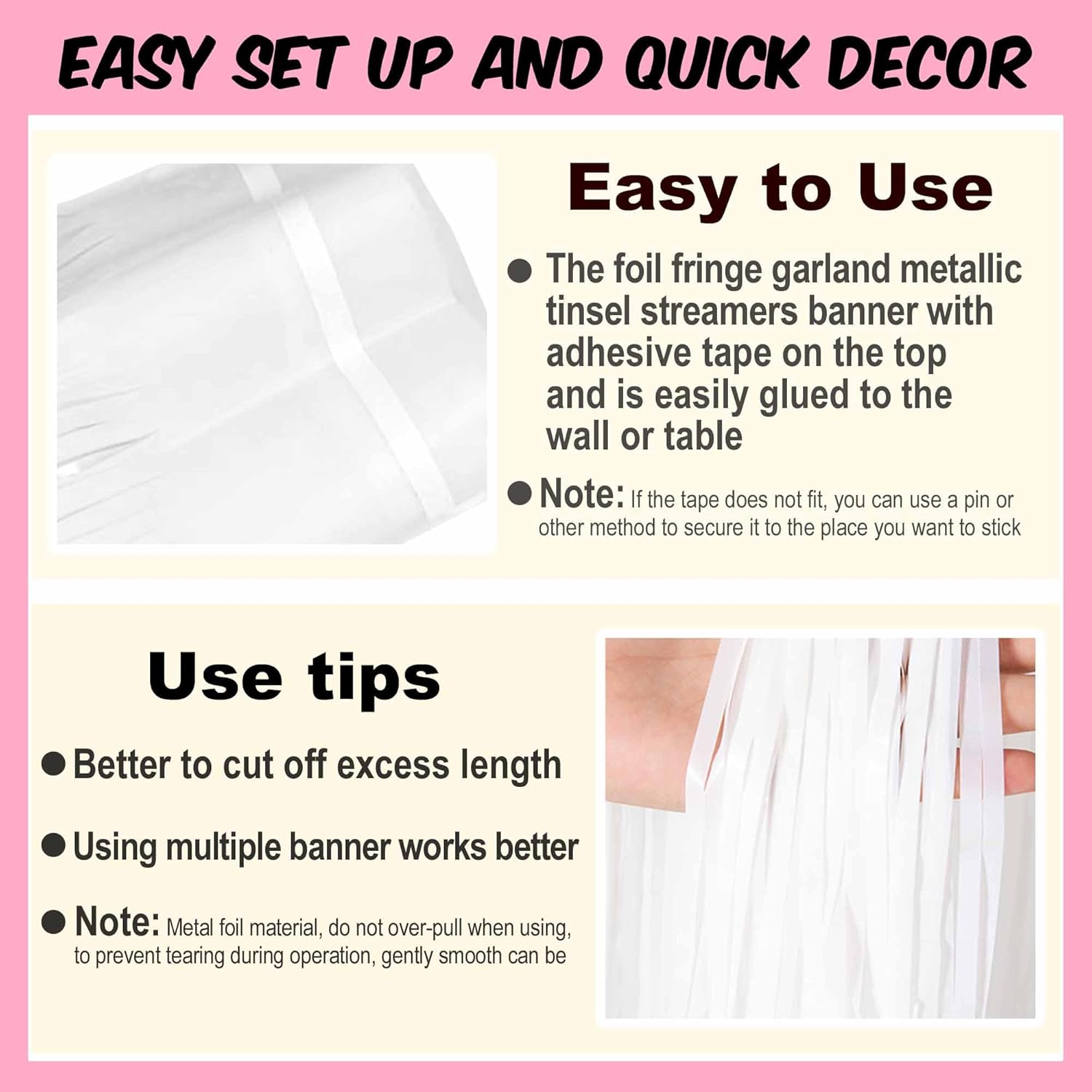 4 Pack 10 Ft Macaron White Foil Fringe Garland Metallic Streamers Tinsel Banner Wall Hanging Garland Backdrop for Parade Floats, Halloween, Christmas, Thanksgiving, New Year Party Decorations