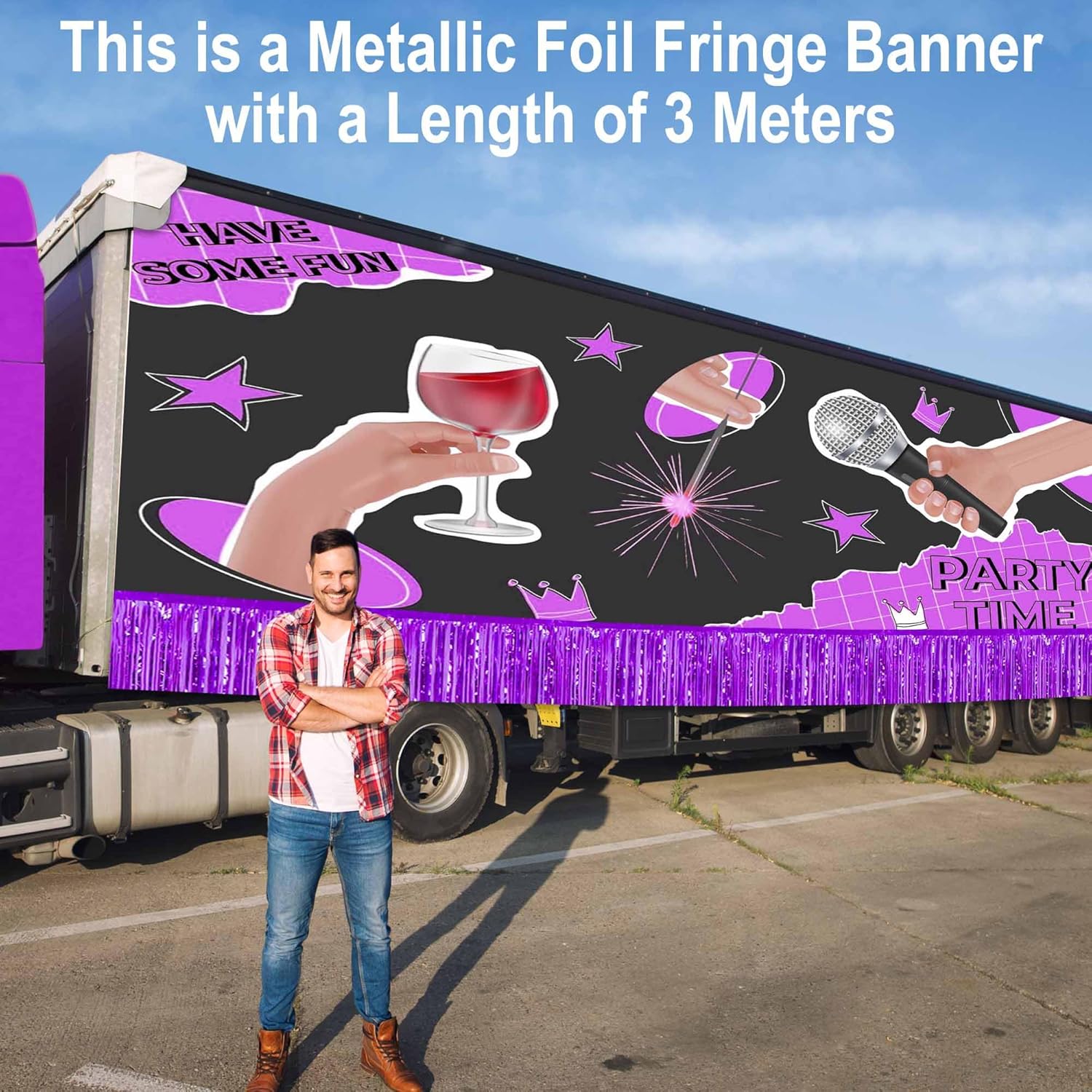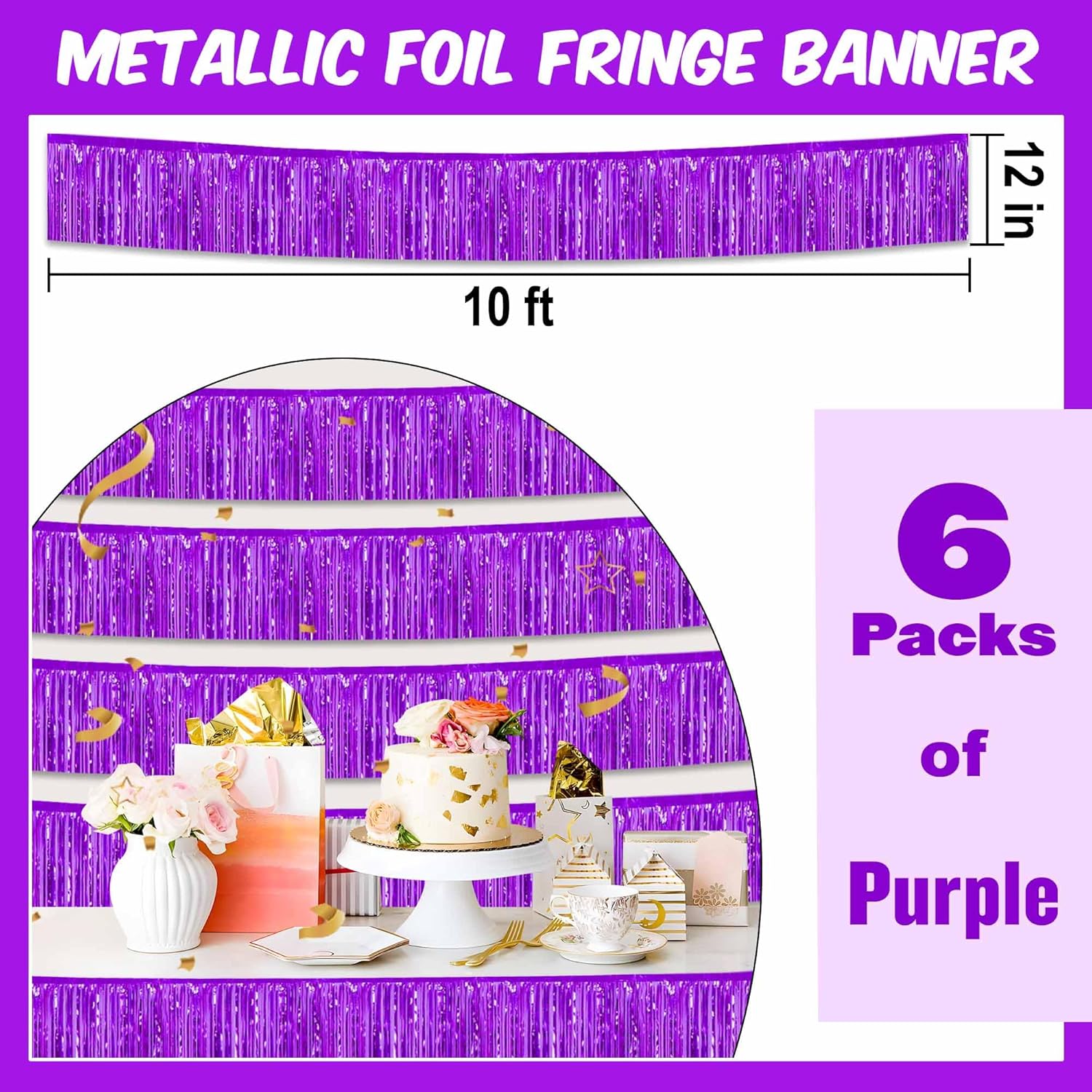 6 Pack 10 Ft Purple Foil Fringe Garland Metallic Streamers Tinsel Banner Wall Hanging Garland Backdrop for Parade Floats, Halloween, Christmas, Thanksgiving, New Year Party Decorations