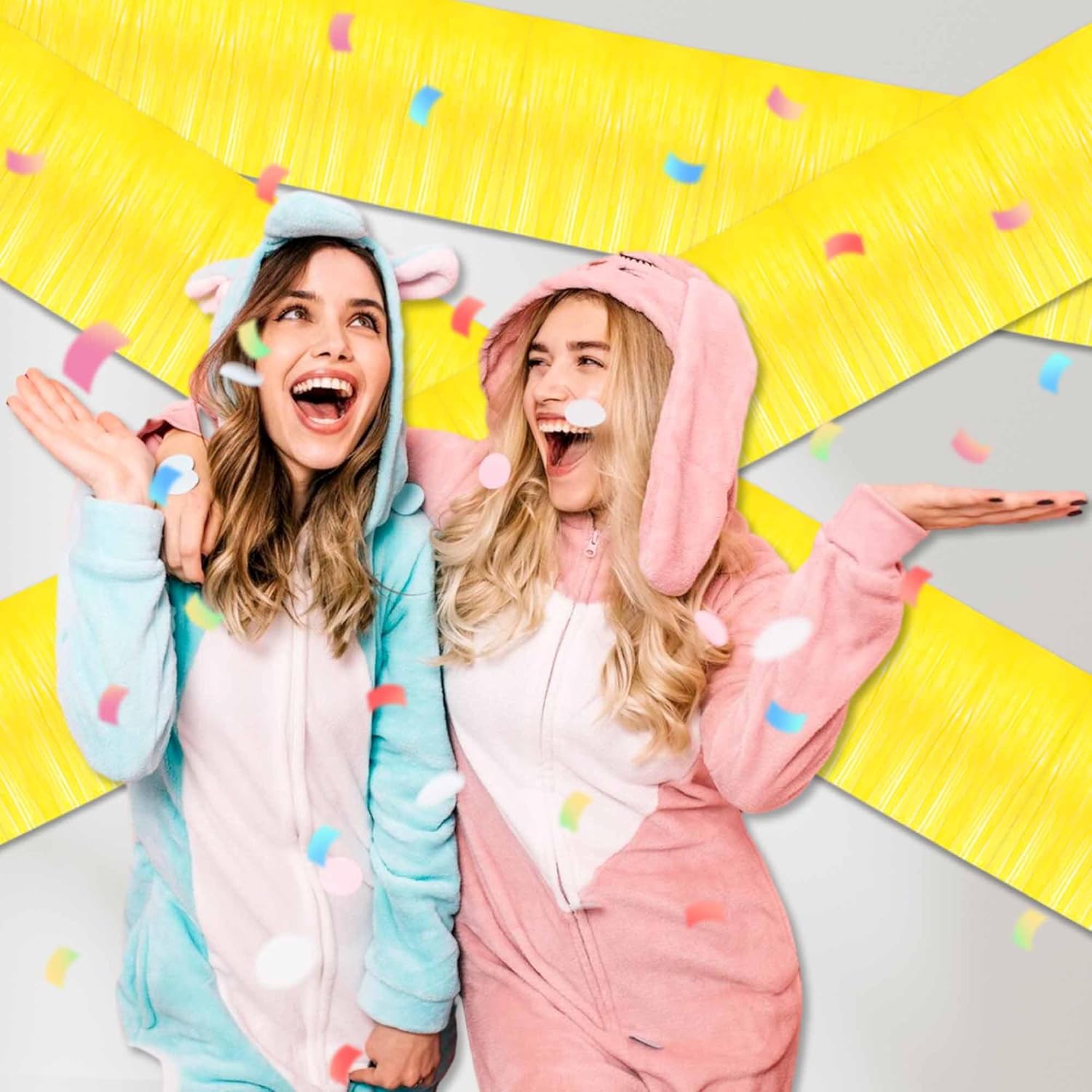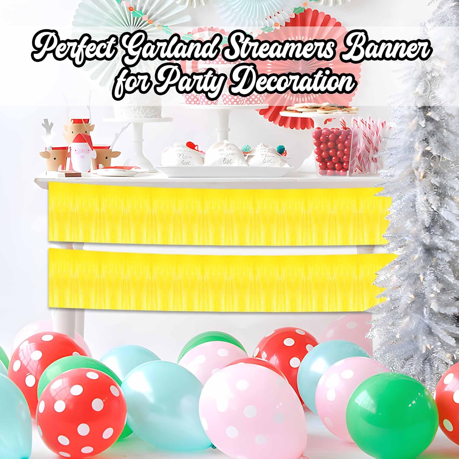 6 Pack 10 Ft Macaron Yellow Foil Fringe Garland Metallic Streamers Tinsel Banner Wall Hanging Garland Backdrop for Parade Floats, Halloween, Christmas, Thanksgiving, New Year Party Decorations