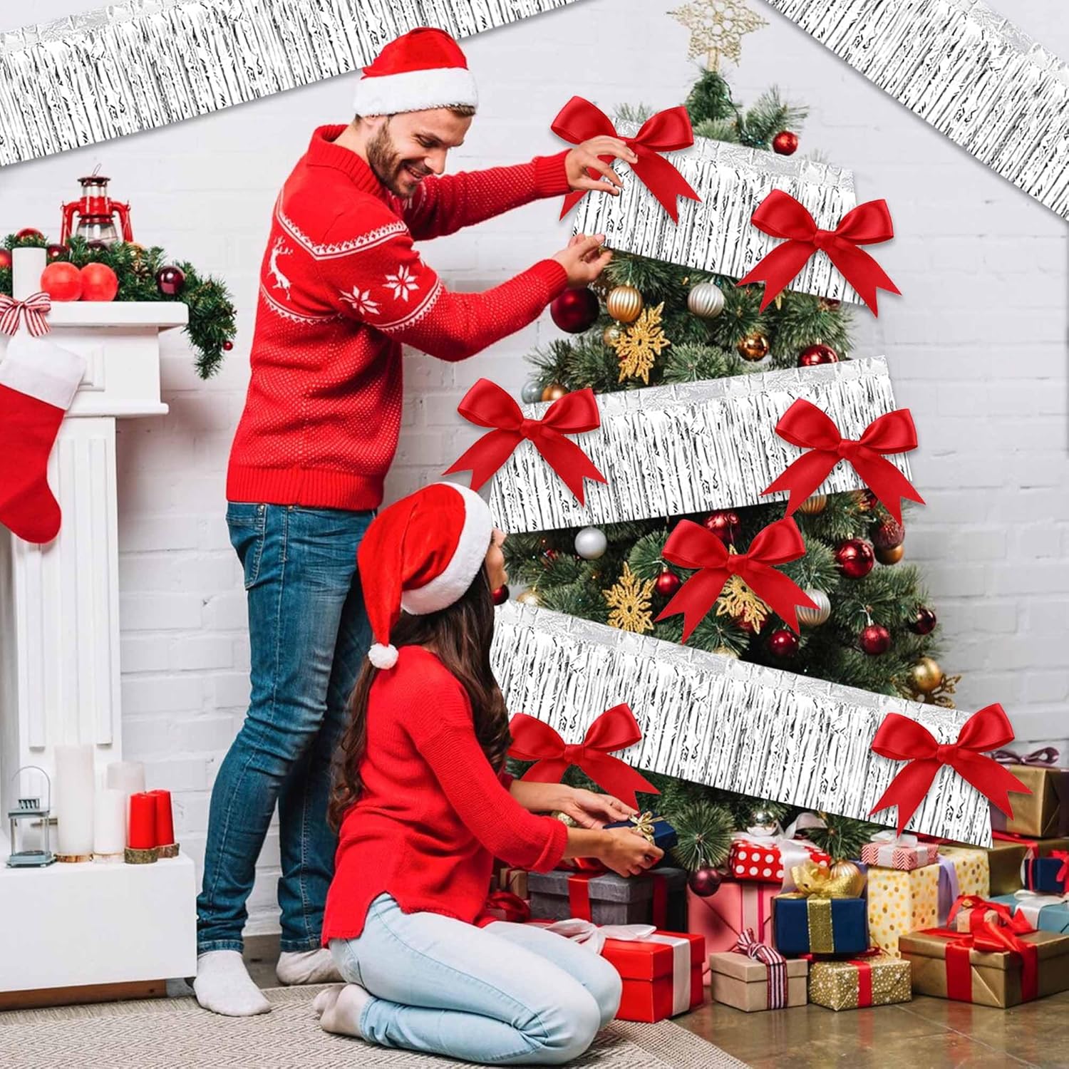4 Pack 10 Ft Silver Foil Fringe Garland Metallic Streamers Tinsel Banner Wall Hanging Garland Backdrop for Parade Floats, Halloween, Christmas, Thanksgiving, New Year Party Decorations