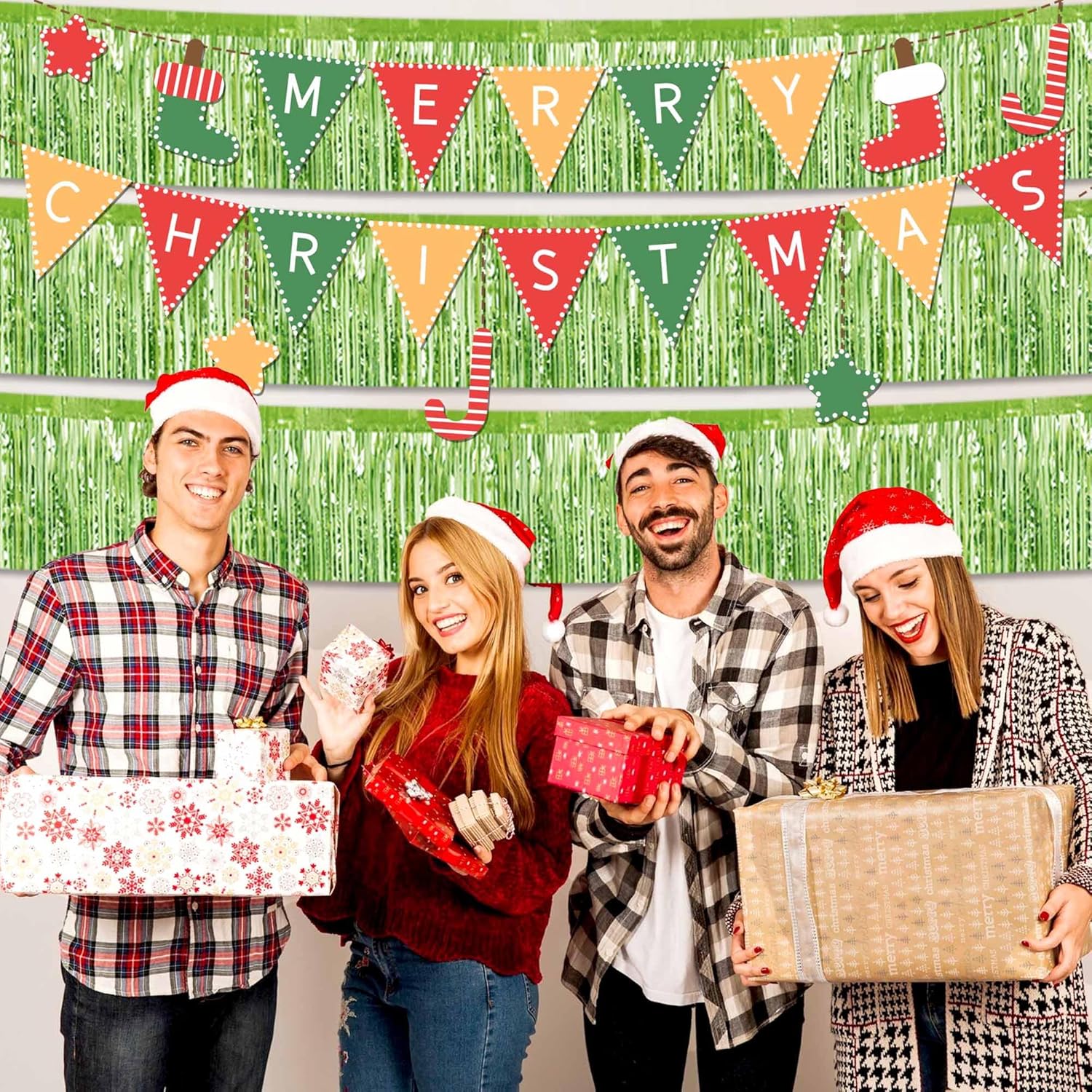 - Easy to Use: Tinsel foil fringe garland banner streamers the back has double-sided tape, gently peel double-sided tape off and it would be very easy to paste on wall, window, table, door, parade float or anywhere you want to decorate, add some festive atmosphere to the party