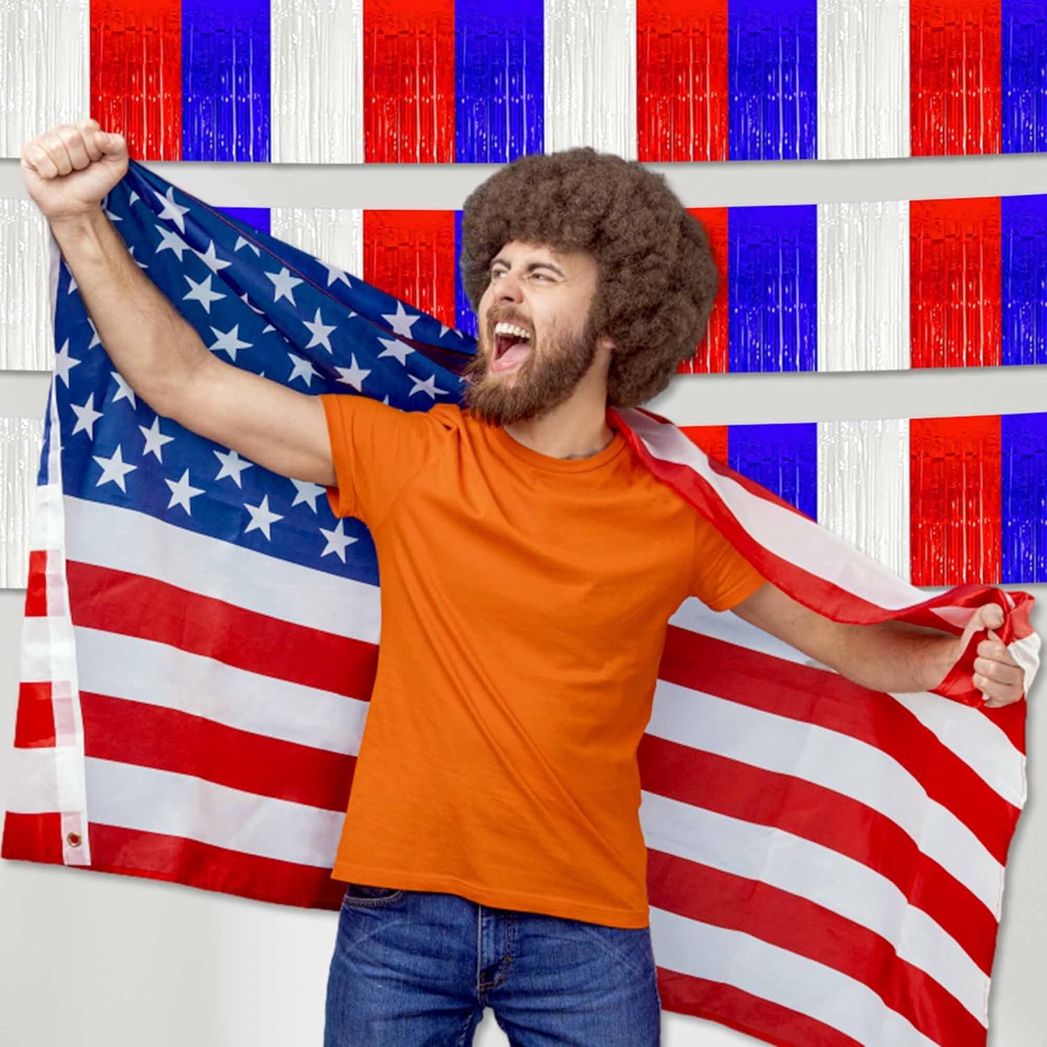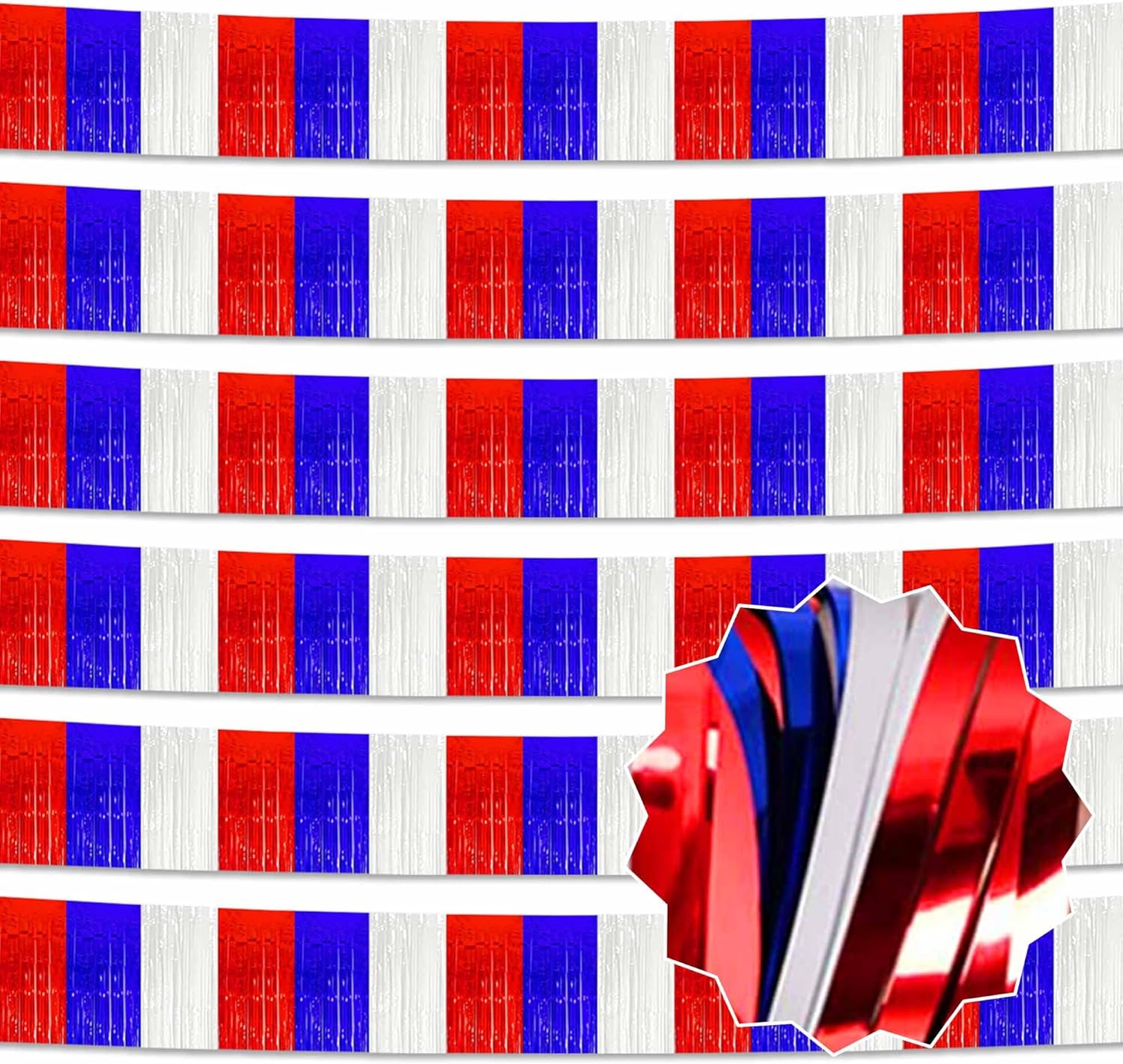 6 Pack 10 Ft White Blue Red Foil Fringe Garland Metallic Streamers Tinsel Banner Wall Hanging Garland Backdrop for Parade Floats, Halloween, Christmas, Thanksgiving, New Year Party Decorations