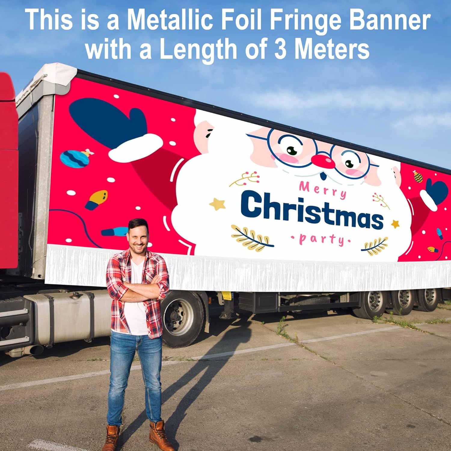 - Package Included: 6 Pack Foil Fringe Garland. Each pack tinsel foil fringe garland size is 12in x 10ft (30cm x 3m). Tinsel fringe garland is 10 feet long, the perfect length size covers a wide area. Made of metallic foil material, reflecting light and creating dazzling effects, adding luxury and visual impact to the party