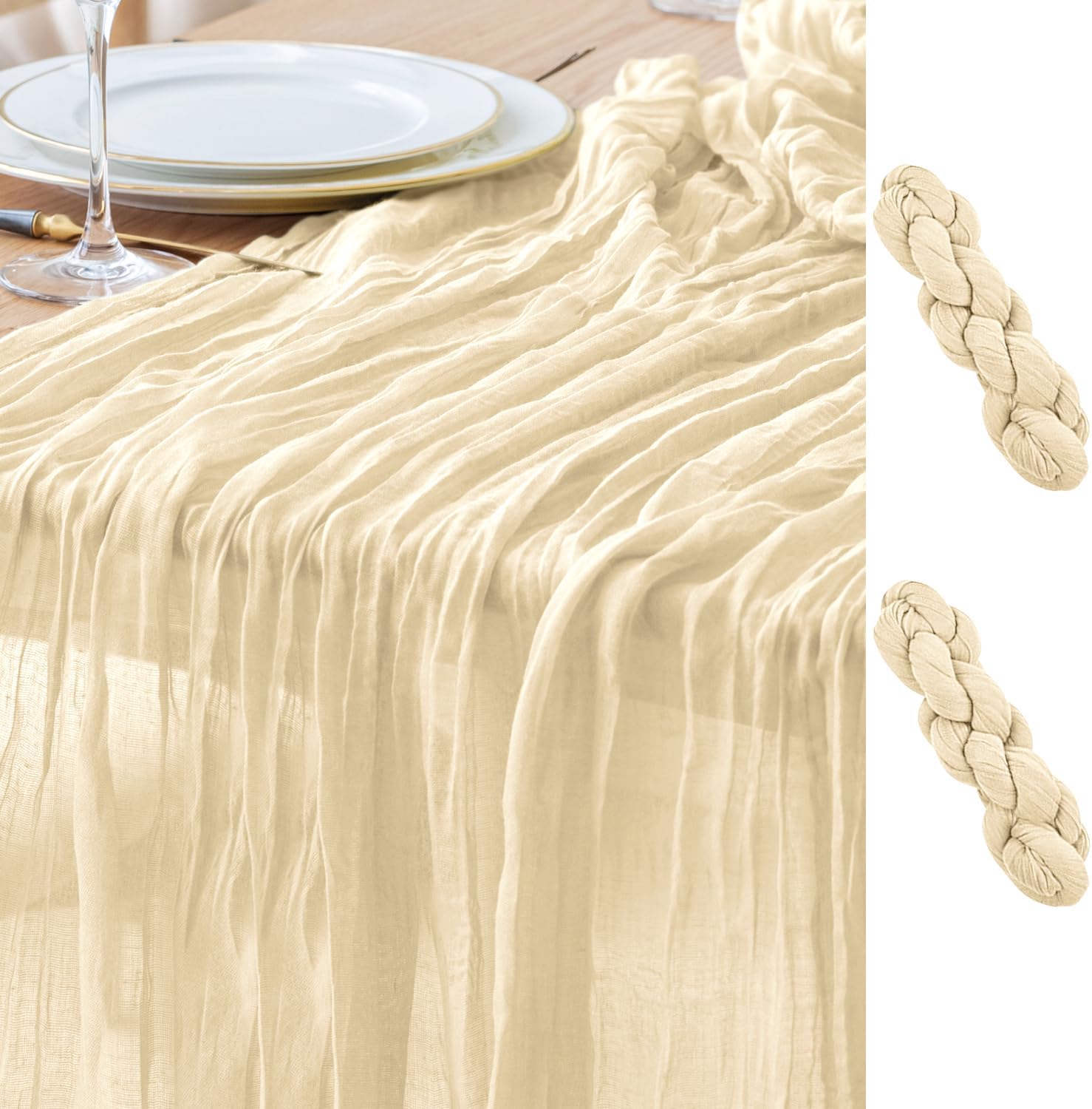 Asee'm 2pcs Cheesecloth Table Runner 120 Inches Long Beige Boho Gauze Cheese Cloth Runner 10FT Rustic Sheer Table Runners for Christmas Wedding Party Baby Shower Spring Easter Decoration