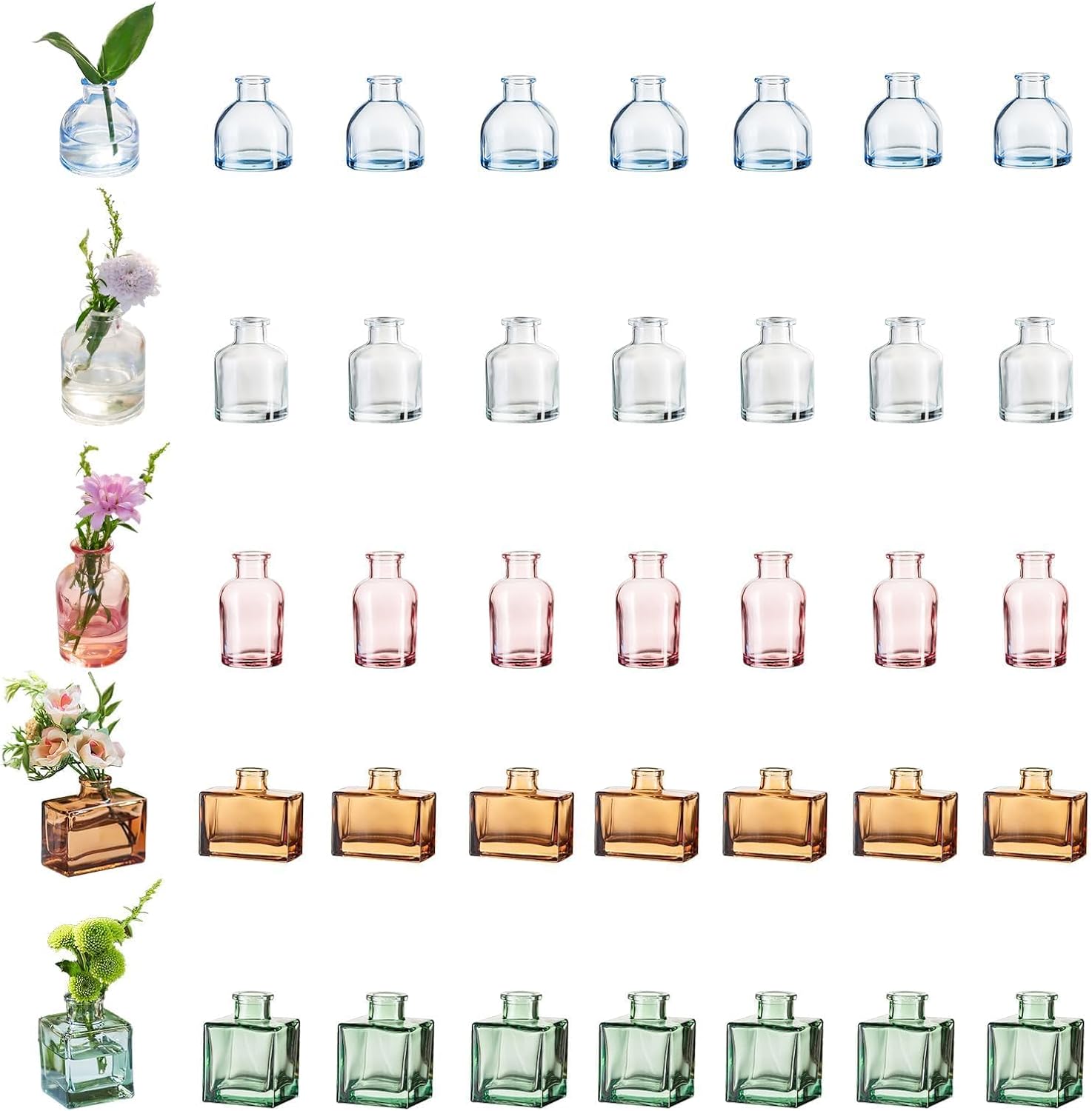 - Versatile Bulk Vases Set: 40 small glass vase in bulk at a reasonable price; A fun and affordable way for an all year decor accent; They are more than a recycled small glass vases, but also a simple reed diffuser bottle, a creative plant propagation vase for plants, and also giftable as birthday party parting gifts, baby shower favors, and wedding souvenirs