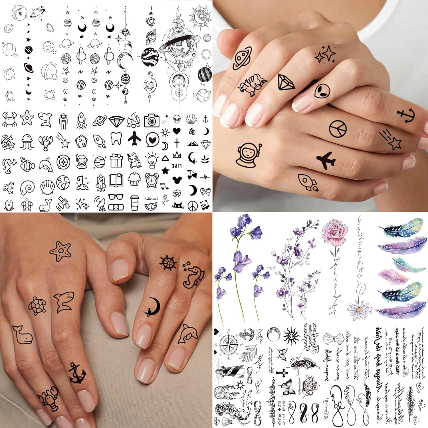 - 🍷Easy Application And Long Lasting🍸 Water Transfer Black Tattoos Paste Is Easy To Use. To Apply Variety Kids Tattoos Temporary On Skin By Wet It With Water And Wait For 20-30 Second. Waterproof Temporary Tatoos For Women Girls Are Disposable Durable And Long Lasting On Body For 4-7 Days But Removal Washable Very Easy To Remove By Rub It With Makeup Remover Oil Or Alcohol. Tattos Design Planets Sun Moon Star Snake Sunflower Feather Birds Sea Weave Universe Elephant infinity Letters.