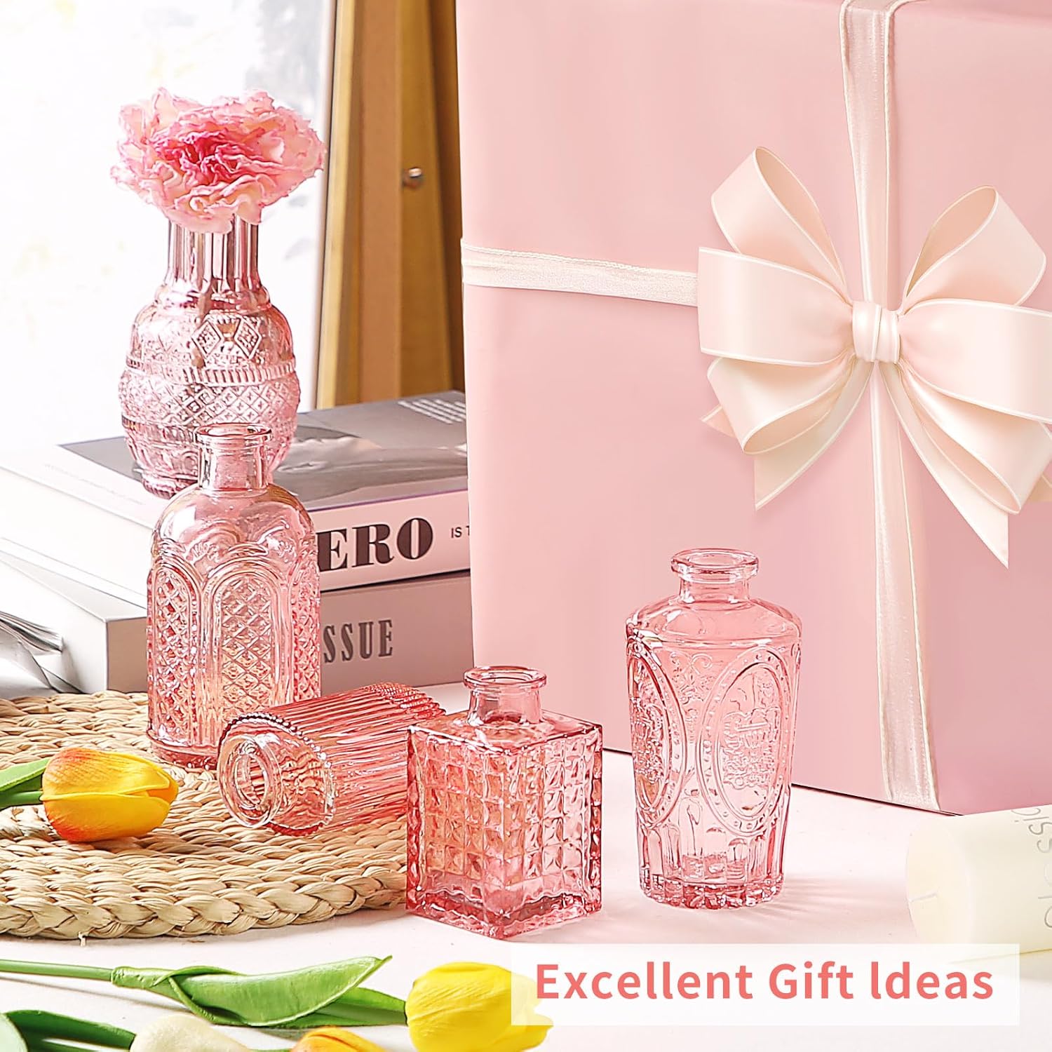 - Elegance Redefined: These mini glass vases in pink serve as perfect vessels for real or artificial flowers. Each small pink vase accommodates a single short stem or two petite flowers, presenting a sophisticated and graceful appearance even when displayed individually. Their delicate shapes and intricate patterns make for captivating décor accents, even without floral arrangements.