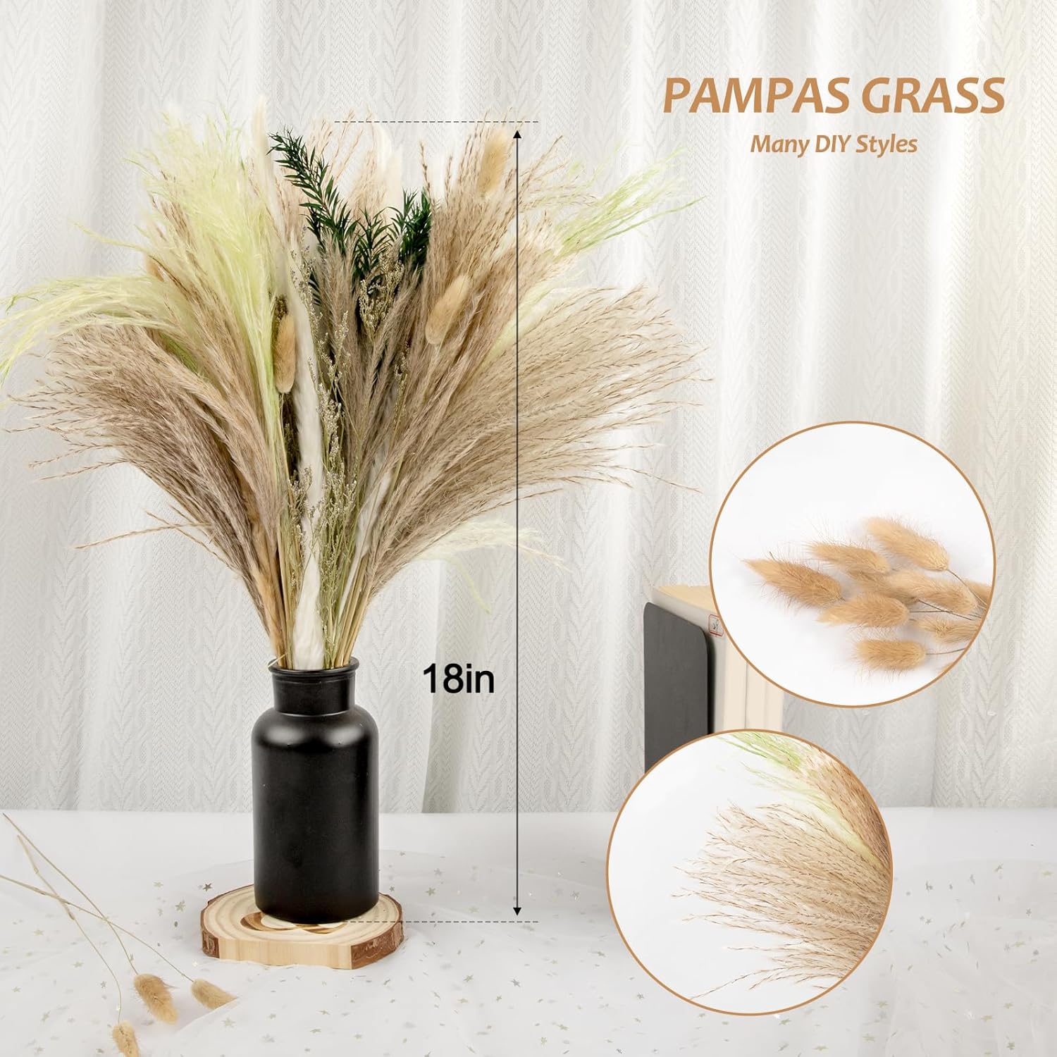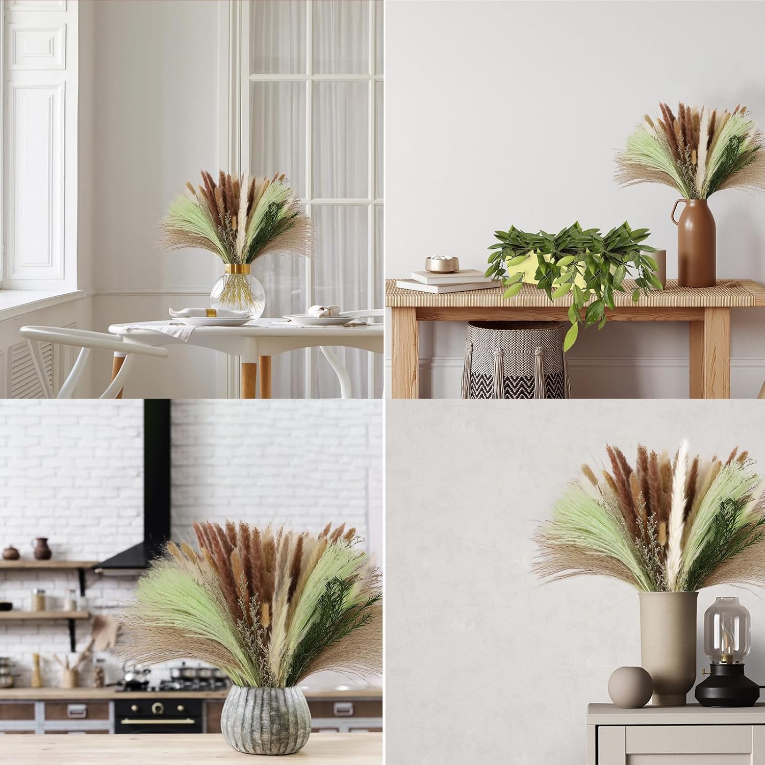 - YOU WILL GET: Each fall pampas plant is approximately 18in (45cm) high,including white pompas Grass*15, brown pampass Grass*15, green pompas*20, reed grass*20, Valentine grass*4, green pampas*1, bunny tails dried fowers*10 for Home Decor Wedding Boho Decor(18 Inch), Pure natural color small pampas grass will bring a modern touch to your home decor.