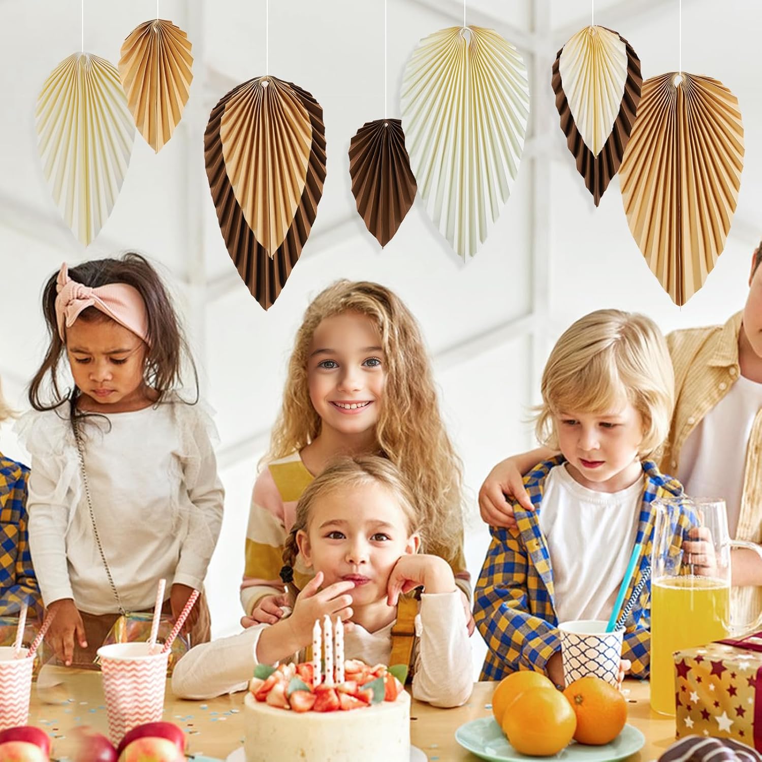 - Boho-inspired design: This decoration set features 9 paper fans in the shape of green leaves, adding a touch of bohemian style to your room or event space. The natural and neutral color palette creates a calming and inviting atmosphere.