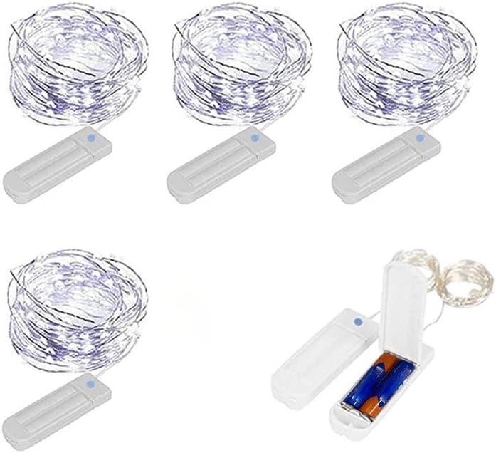 - 【4 Pack Ultra-Bright LED Battery Powered Fairy Lights】4 packs of 50LED lights with a total wire length of 8.2 feet. Each fairy lights is composed of 50 super bright LED bulbs, each bulb spacing of 2 inches, emit 2700k cool white light, bring a romantic atmosphere to your bedroom, garden, its battery box size of 2.95*0.9 inches;