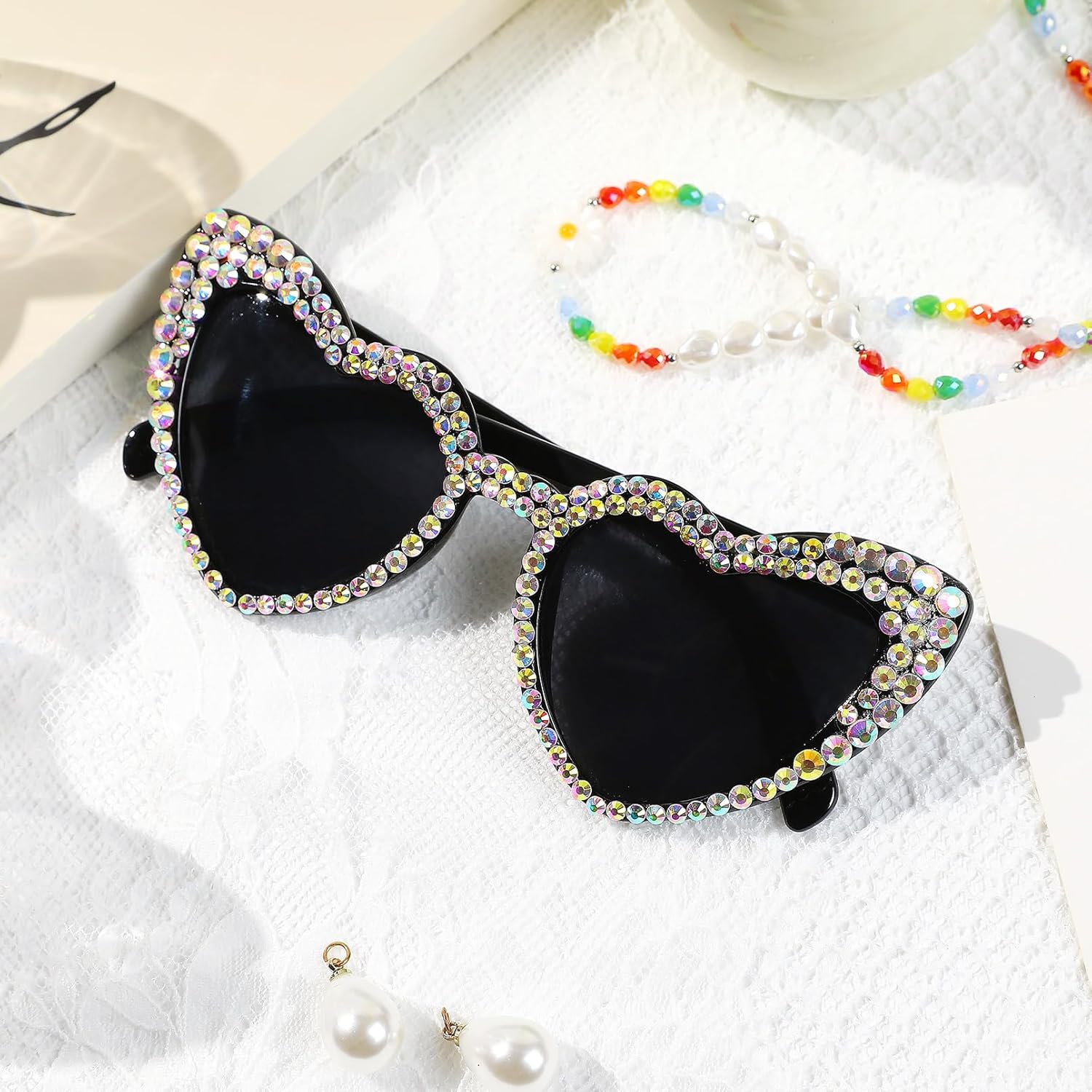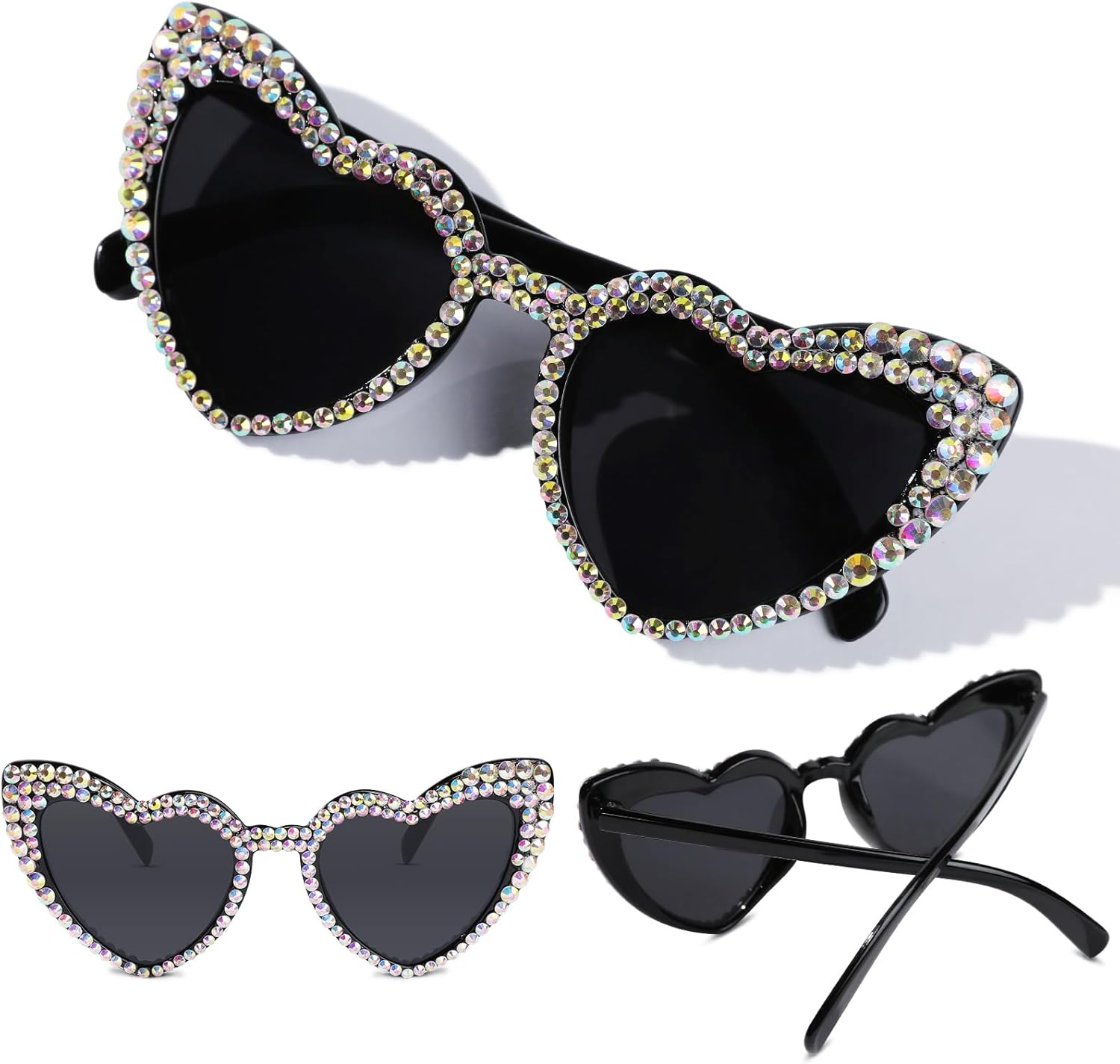 - [Photo-Ready Glam]: Capture unforgettable moments with our heart-embellished sunglasses. Ideal for wedding showers and bachelor parties, these cute sunglasses add a stylish touch to your photos and enhance the celebration.