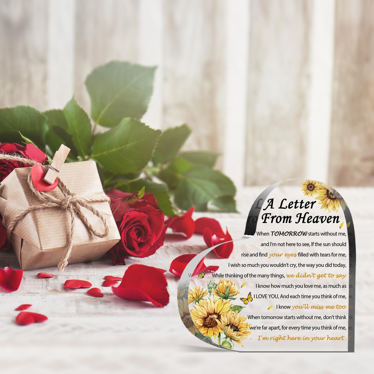 Sympathy Gifts - A Letter from Heaven- Memorial Gift for Loss of Mother Father Husband Son, Acrylic Heart Keepsake,Remembrance Sympathy Gifts (Sunflower)