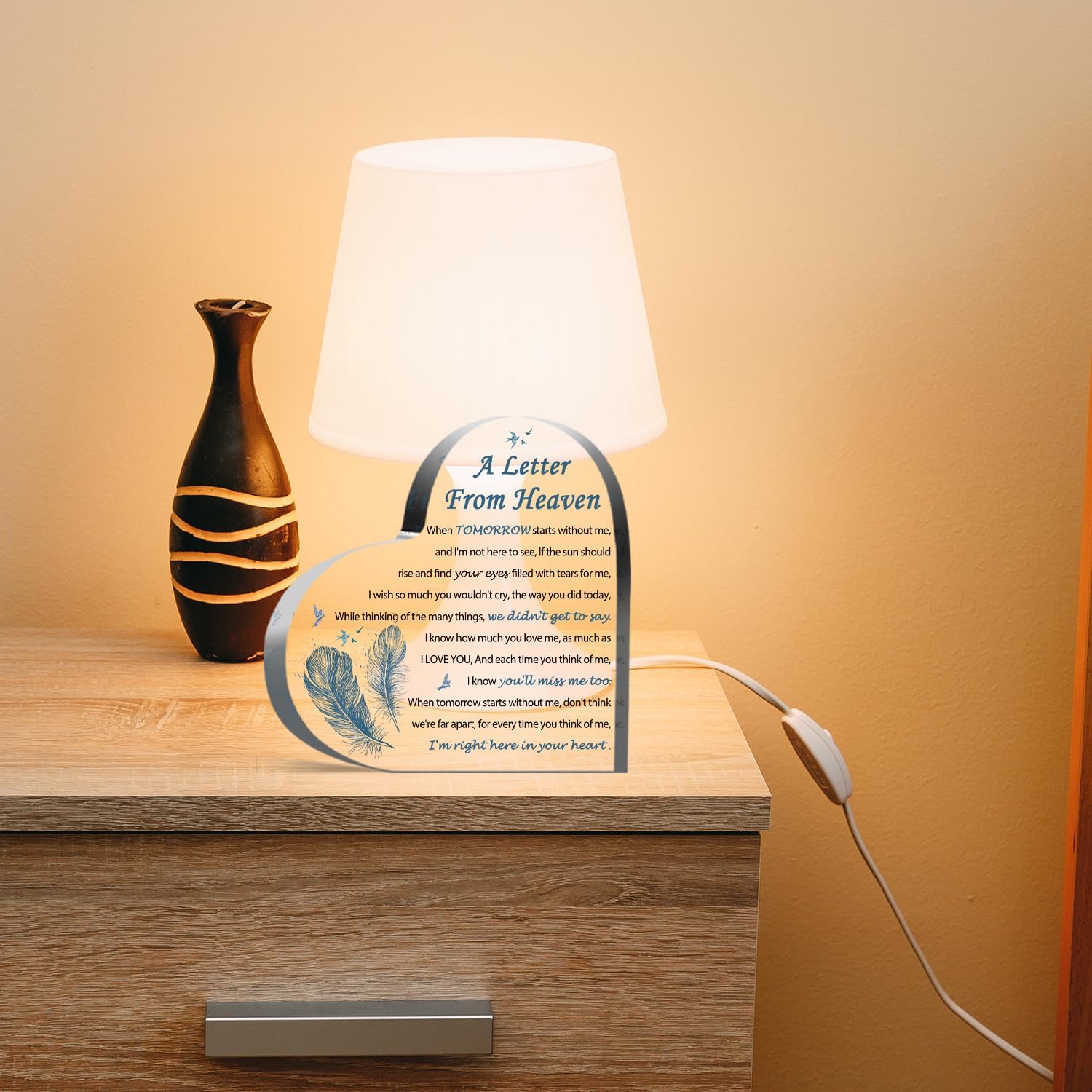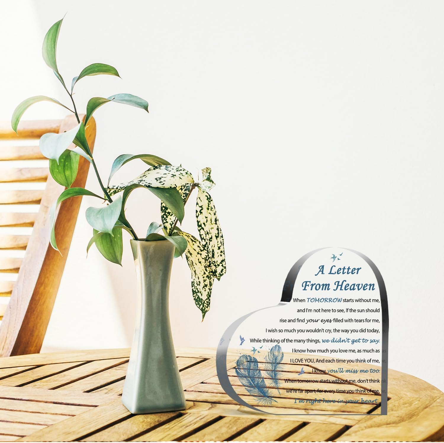 Sympathy Gifts - A Letter from Heaven- Memorial Gift for Loss of Mother Father Husband Son, Acrylic Heart Keepsake,Remembrance Sympathy Gifts (Feather)