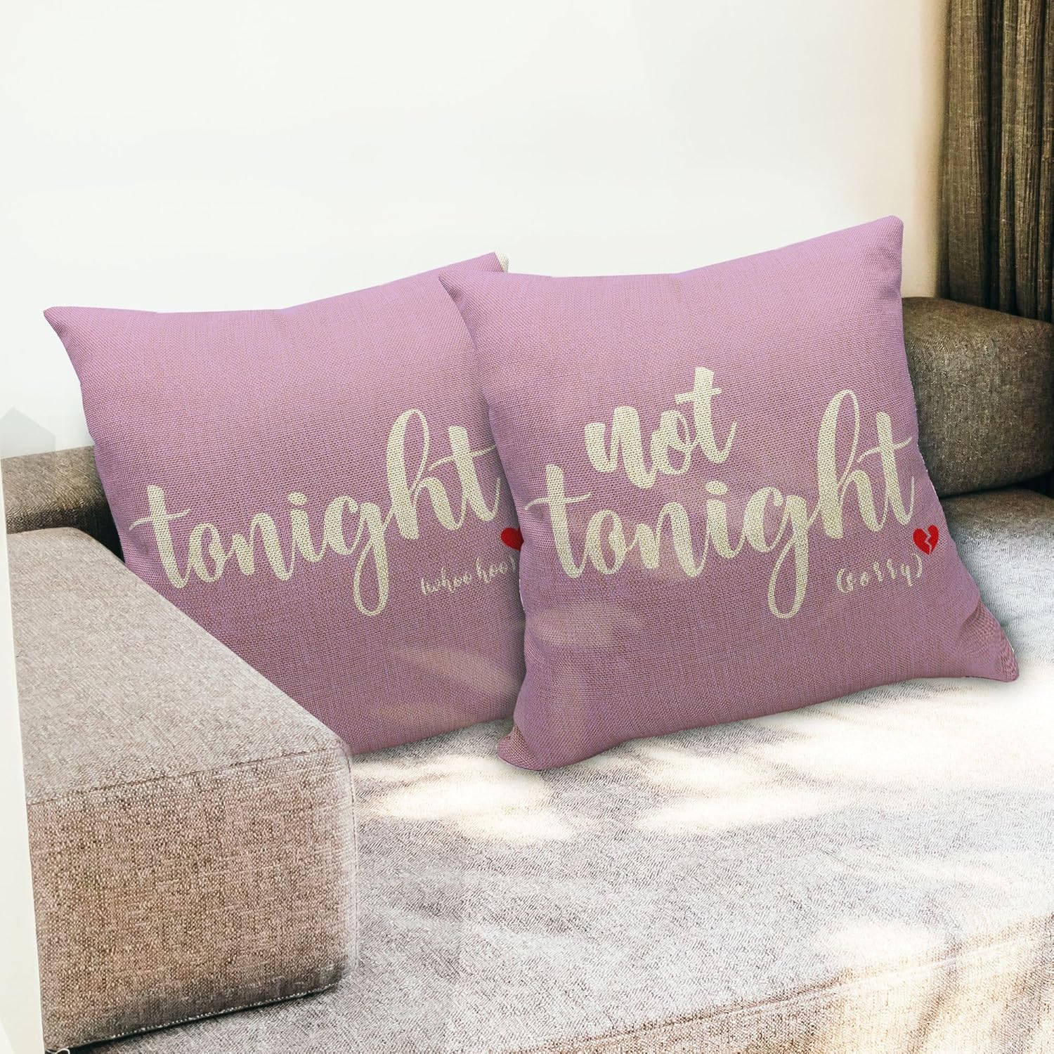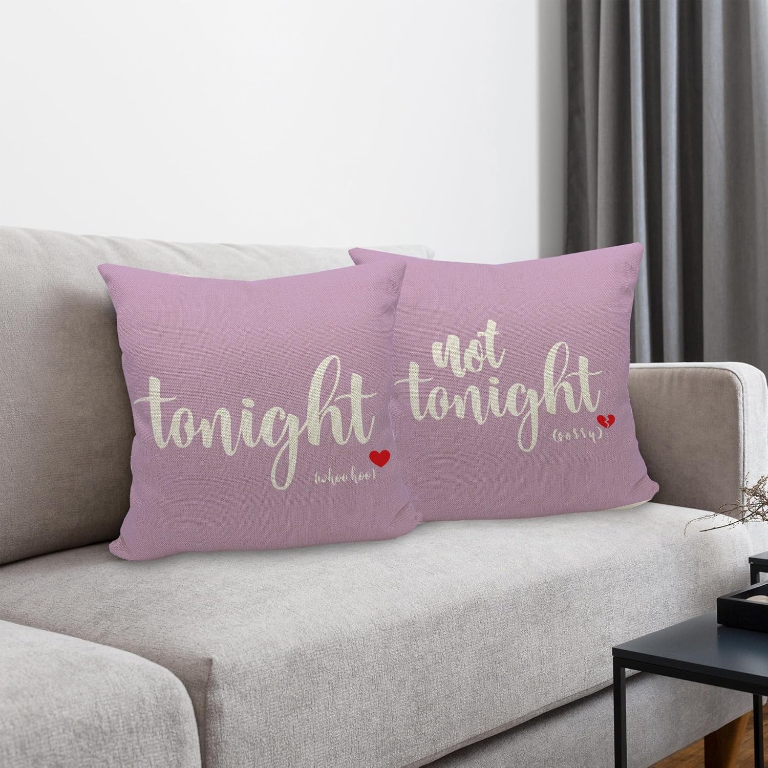 - Dual-sided Design: Enjoy the versatility of two charming patterns – "Tonight" and "Not Tonight." Playfully set the mood by flipping the pillow to match your desires, adding a touch of fun to your bedroom or sofa.