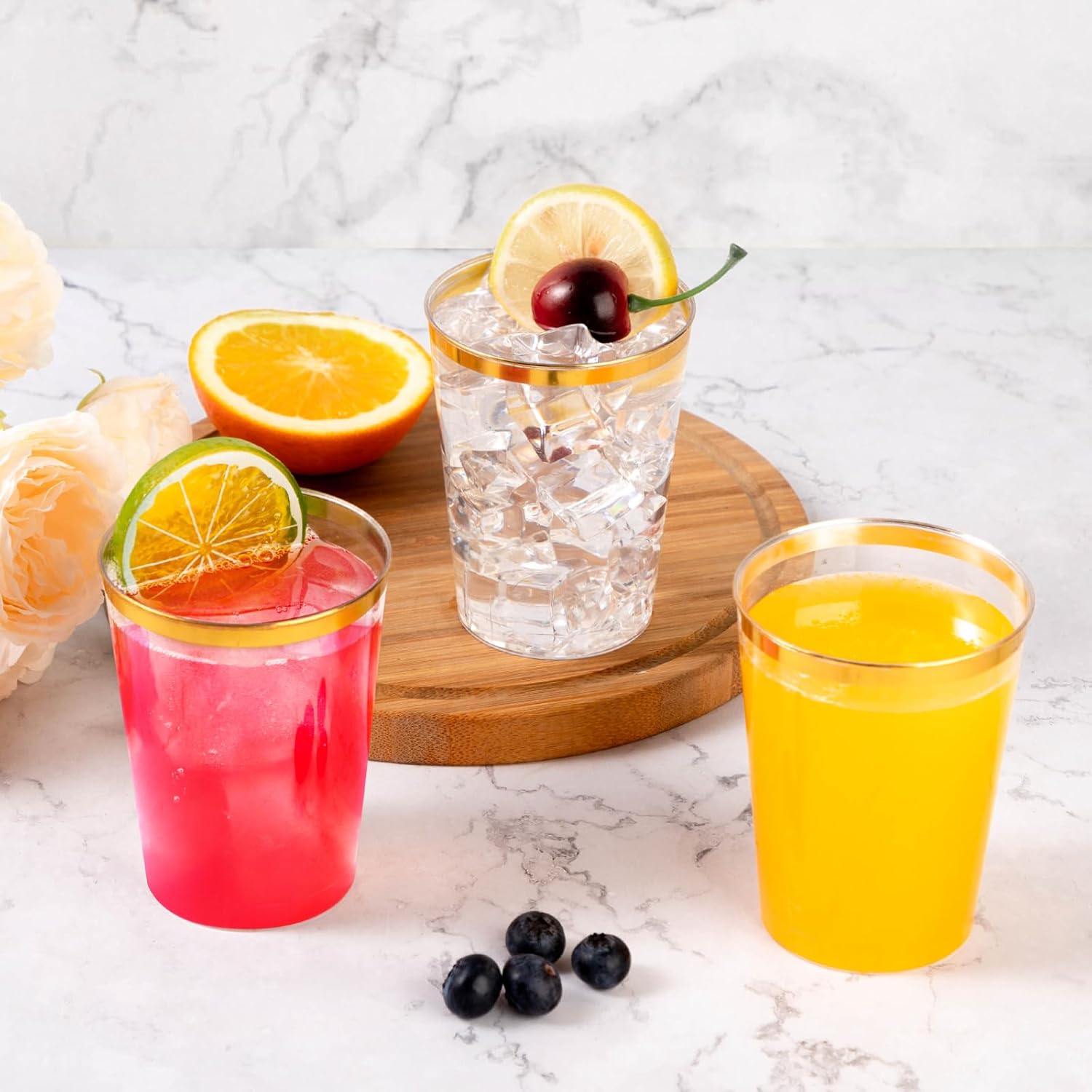 Goodluck 200PCS 12oz Gold Plastic Cups for Party, Disposable Gold Rim Cups, Plastic Cocktail Glasses for Wedding Thanksgiving, Christmas, and Parties