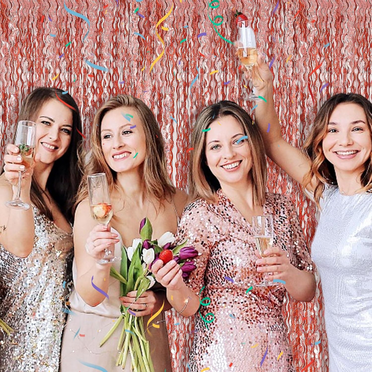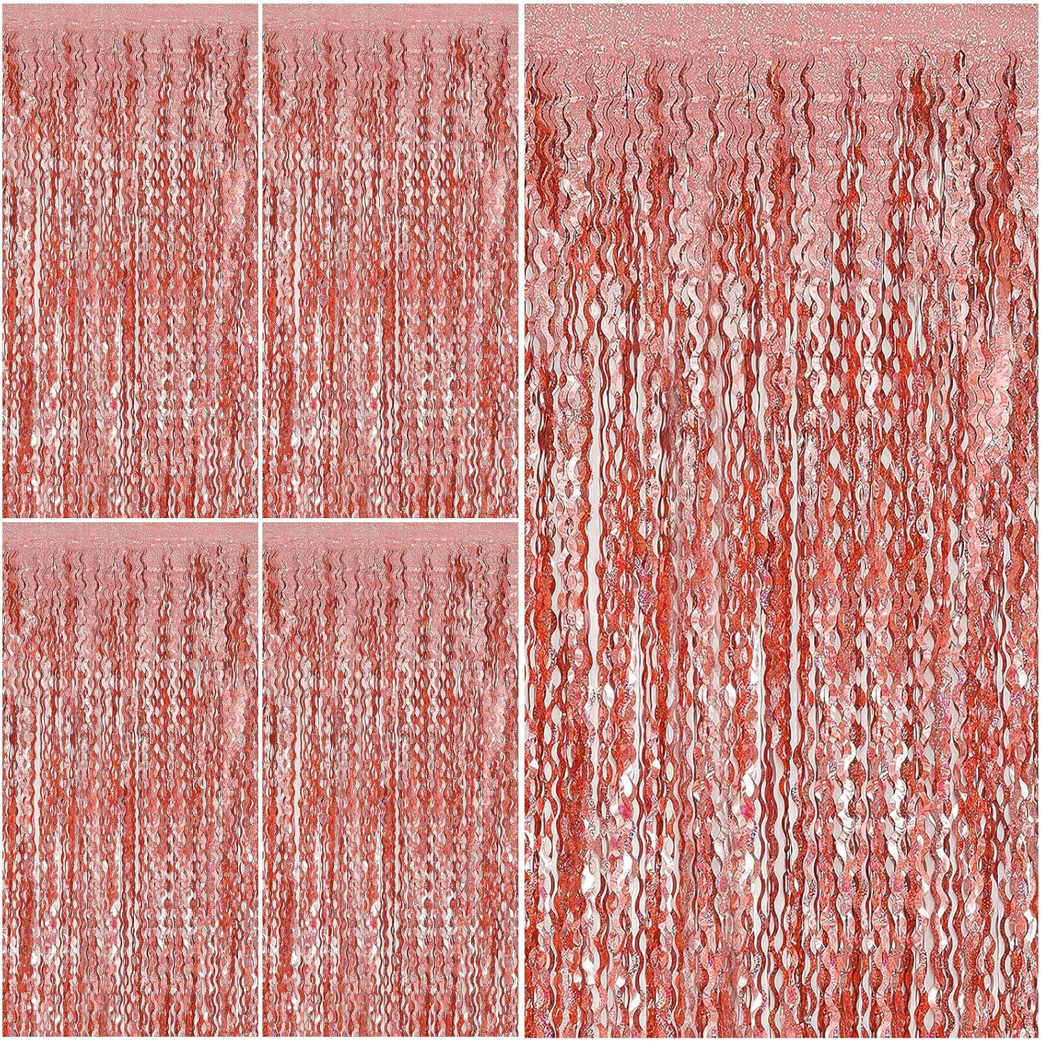 - Rose Gold Birthday Decorations:5 Pack, each curtains size is 3.28 ft x 6.56 ft, enough length foil fringe backdrops are perfect for the door, wall and table,feel free to cut to any length you want.