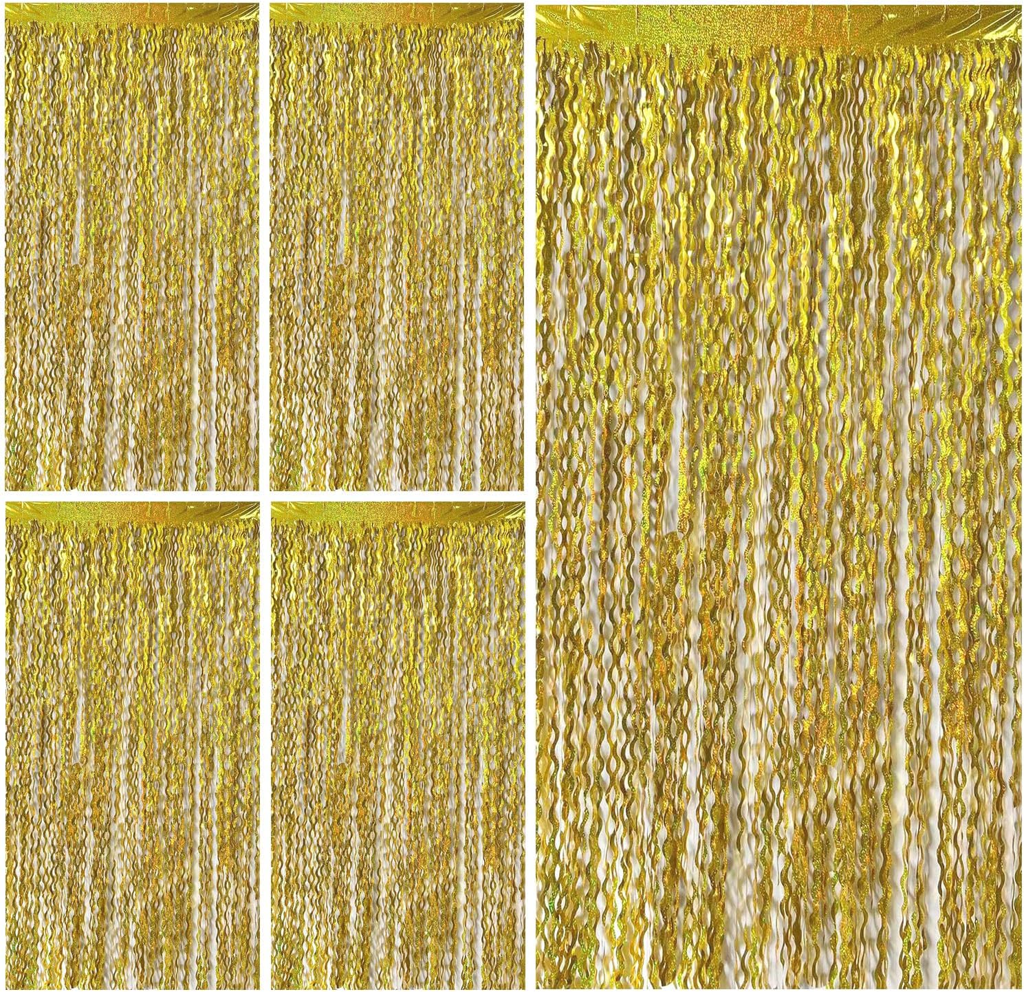 - Gold Backdrop :5 Pack, each curtains size is 3.28 ft x 6.56 ft, enough length foil fringe backdrops are perfect for the door, wall and table,feel free to cut to any length you want.