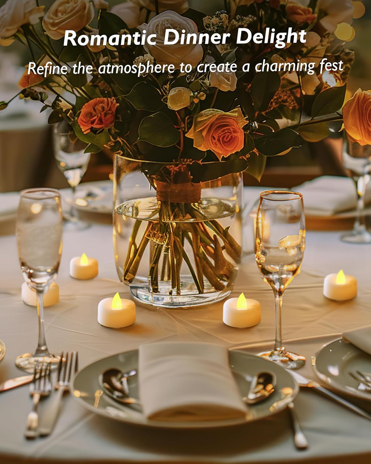 - Smart Remote With Timer: You can use the ten key remote to control the tea candles, adjust the brightness or change the flickering mode; You can also set timers 2 4 6 or 8 hours, every 24 hour cycle timer to save battery power