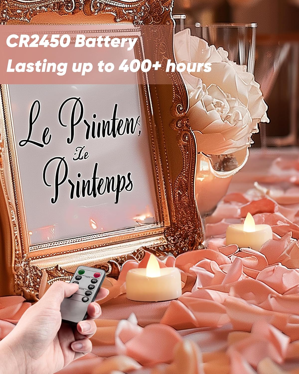 - Smart Remote With Timer: You can use the ten key remote to control the tea candles, adjust the brightness or change the flickering mode; You can also set timers 2 4 6 or 8 hours, every 24 hour cycle timer to save battery power