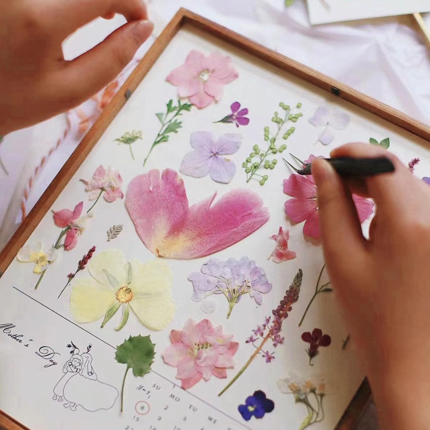 - 🌼Made of natural flowers and leaves, thus each piece varies slightly in size and shape.Each package contains 14 types of plant materials. total about 48 pcs.