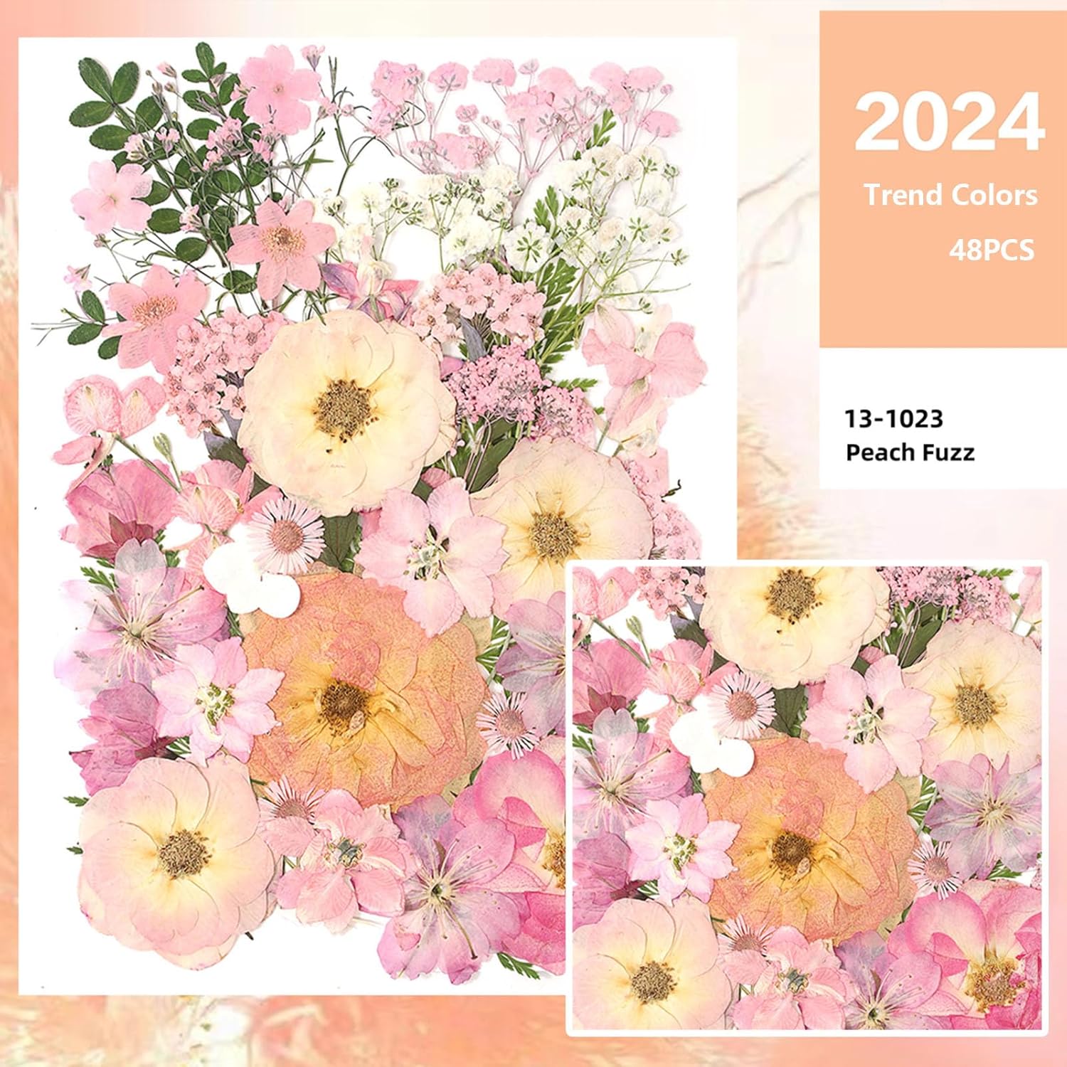 AHTONG 14 Types Pink Dried Pressed Flowers for Craft, Leaf Plant Herbarium for Resin Molds Jewelry Making Floral Decors (Peach Fuzz)