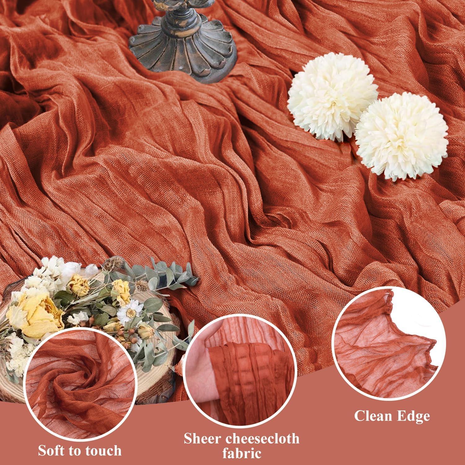 Asee'm 4pcs Cheesecloth Table Runner 120 Inches Long Terracotta Boho Gauze Cheese Cloth Runner 10FT Rustic Sheer Fall Table Runners for Thanksgiving Christmas Wedding Party Baby Shower Decoration