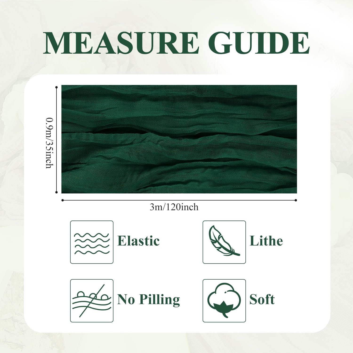 Asee'm 6PCS Table Runner Cheesecloth 10FT Emerald Green Boho Gauze Fabric Rustic Sheer Cheese Cloth Runners for Wedding Bridal Shower Party