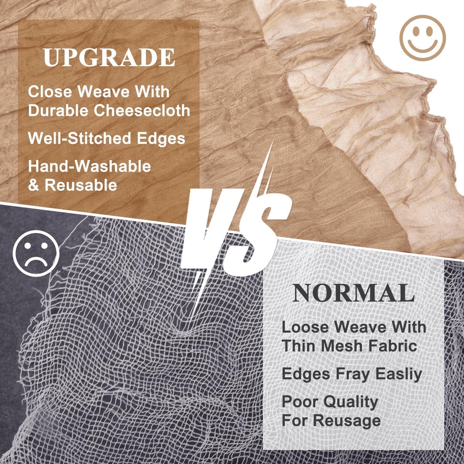 - 【Cheesecloth Table Runner】 Size: 35" W x 120" L. You will get 4 pieces 10FT length cheesecloth table runner. The sheer rustic table runner is long enough to span a large table and drape gracefully across the table. It will gently sway in the wind, adding a romantic atmosphere to your occasion. These eye-catching gauze table runners are ideal for arranging an elegant, stylish tablescape.